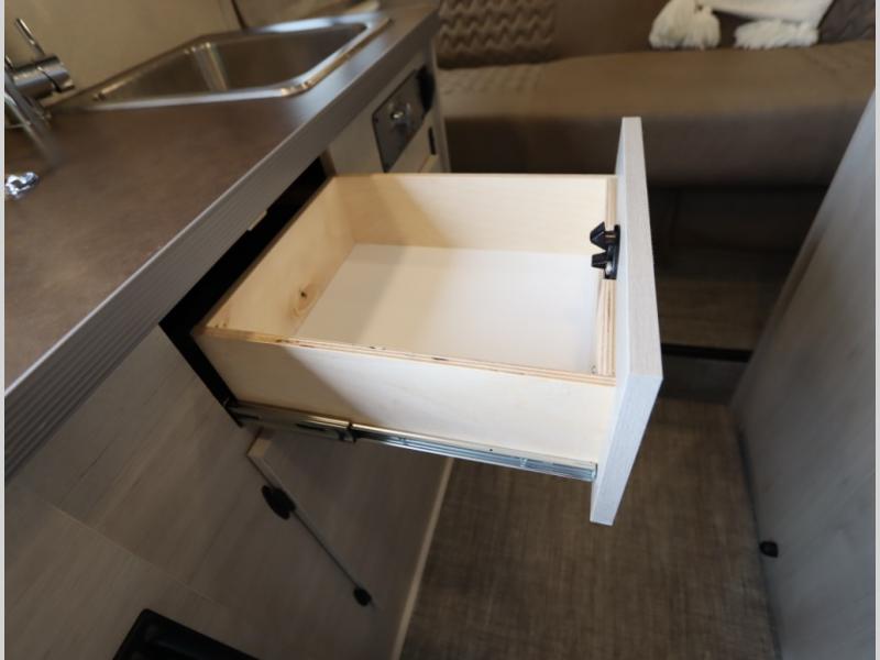 With its heavy duty vinyl flooring, robust insulation package, recirculating hot water system, below floor storage, two exterior wash stations and an adjustable table to take in all the views - it's clear, the Solis can adapt to any adventure.