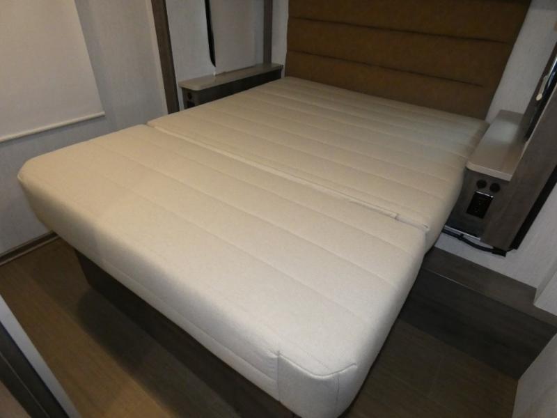 Time spent in this spacious coach will be time well spent! Whether you're dining around the U-shaped dinette, relaxing on the theater seats, or visiting outdoors under the power awning, you're sure to have a great time. The cab-over bunk and the living room furniture will provide sleeping space for guests. A three burner range and a microwave oven will let you prepare your best meals while you're on the road, plus there is an 8 cu. ft. 2-way large double door refrigerator/freezer and pantry for food storage. After a long day outdoors exploring trails, you can relax in the private bedroom on the RV queen bed slide. There are dual bedside nightstands for your things, a sliding door for more space, plus quick access into the rear corner full bath!