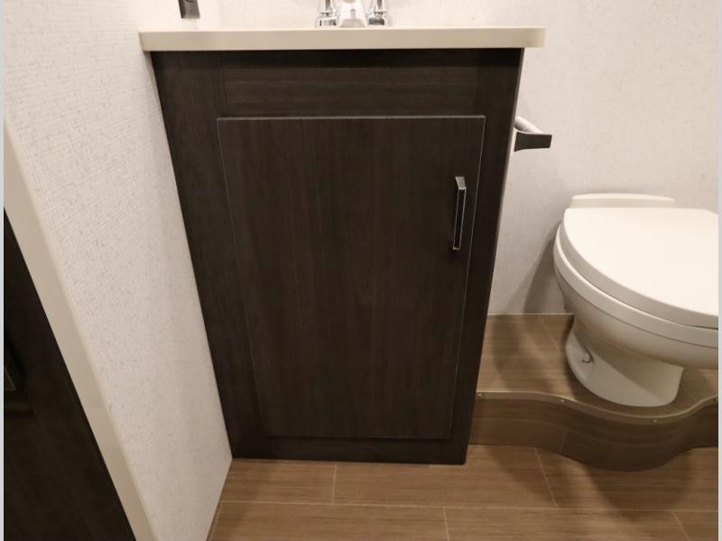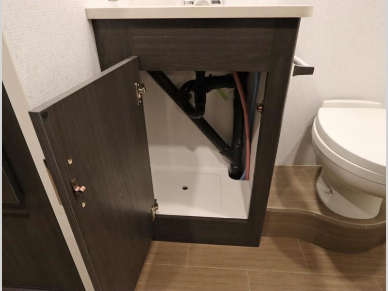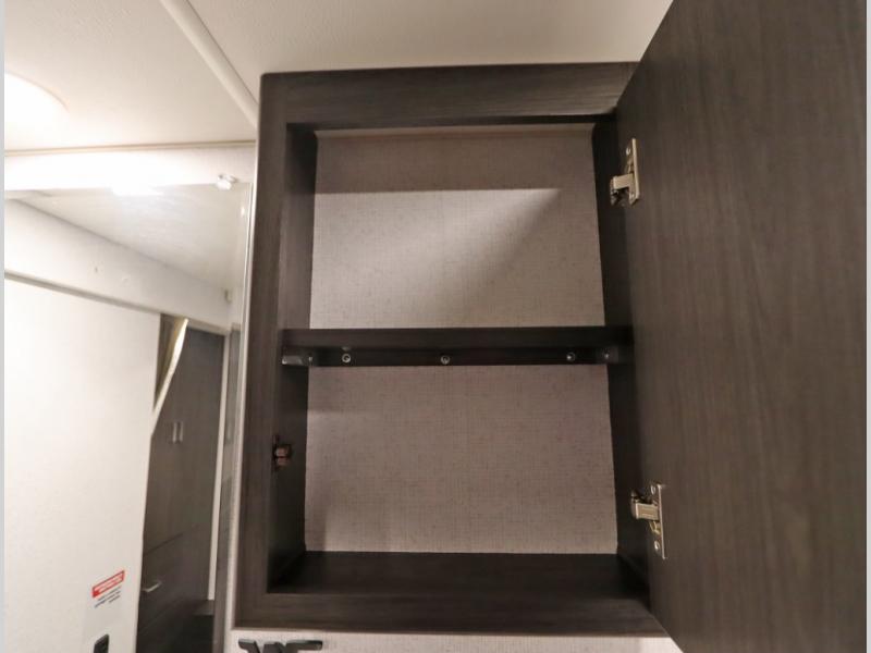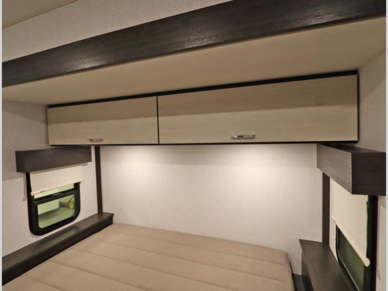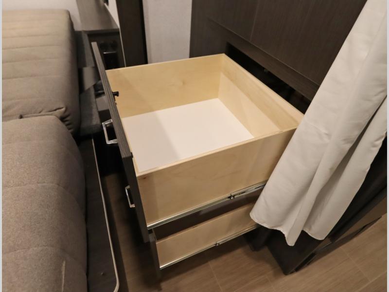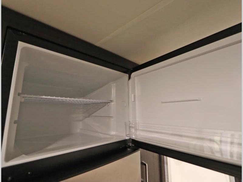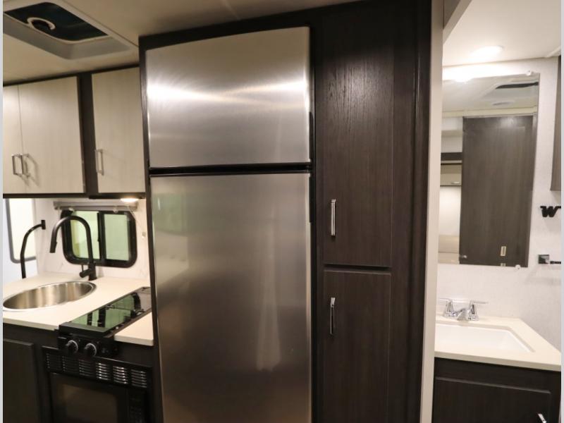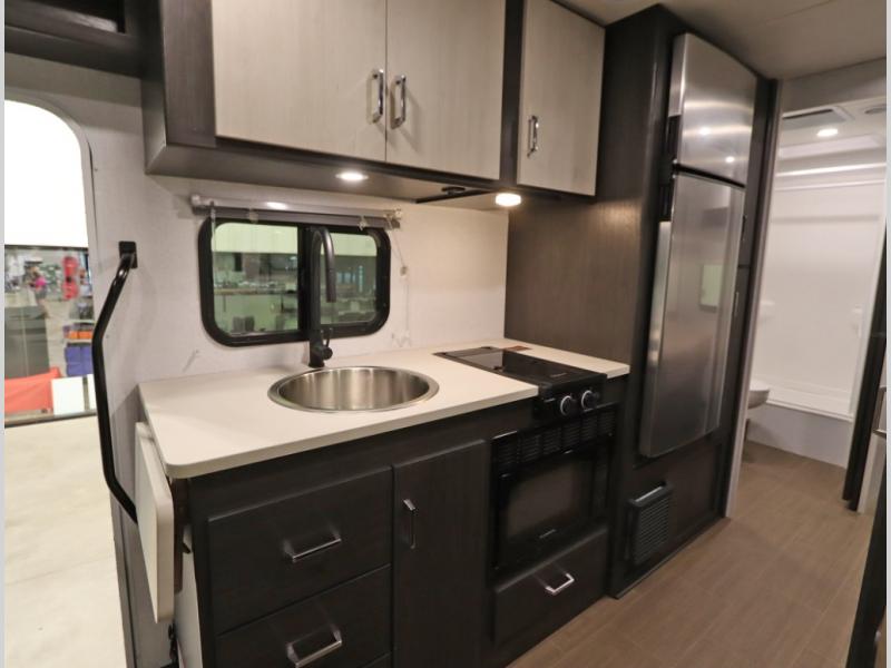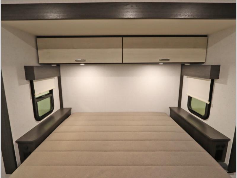 Convenient Amenities: The convection microwave with a built-in air fryer saves space, while flat floor designs enhance movement throughout the coach.