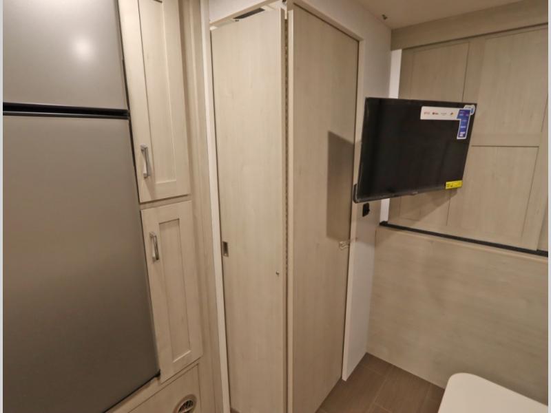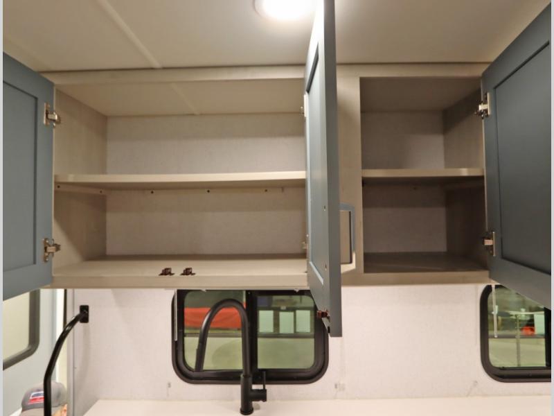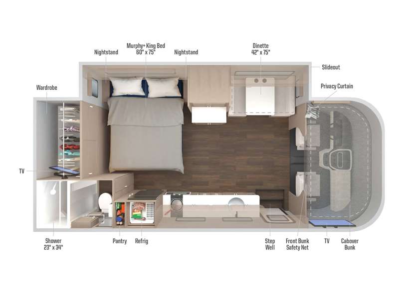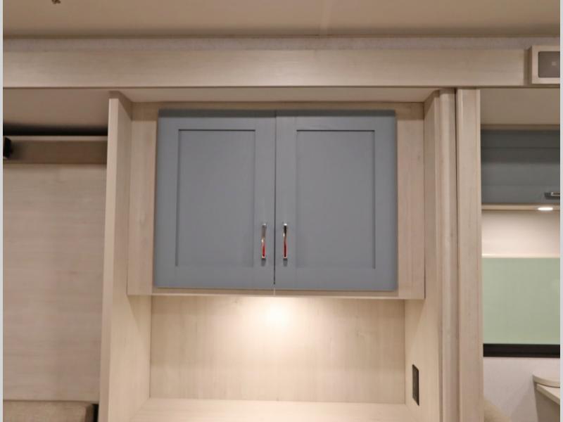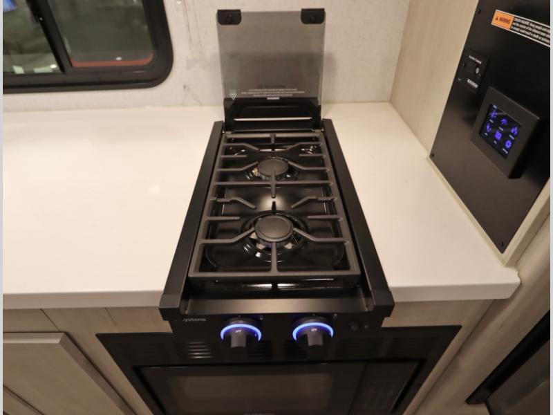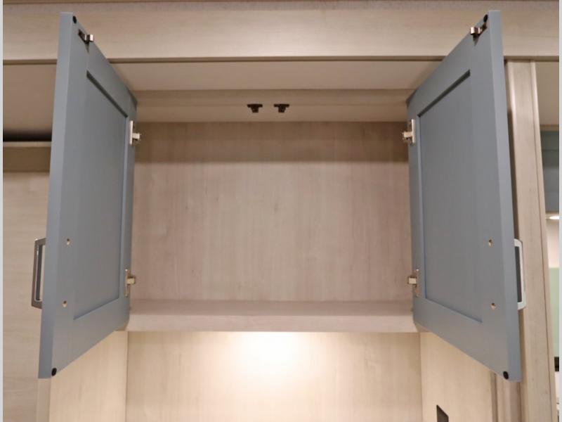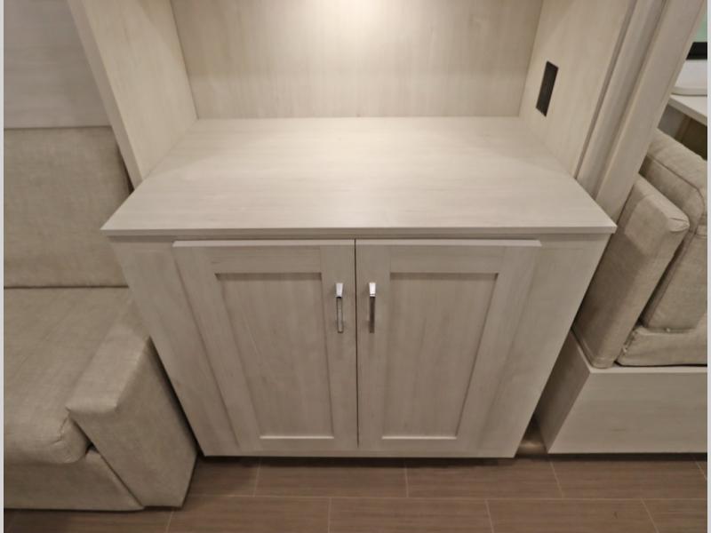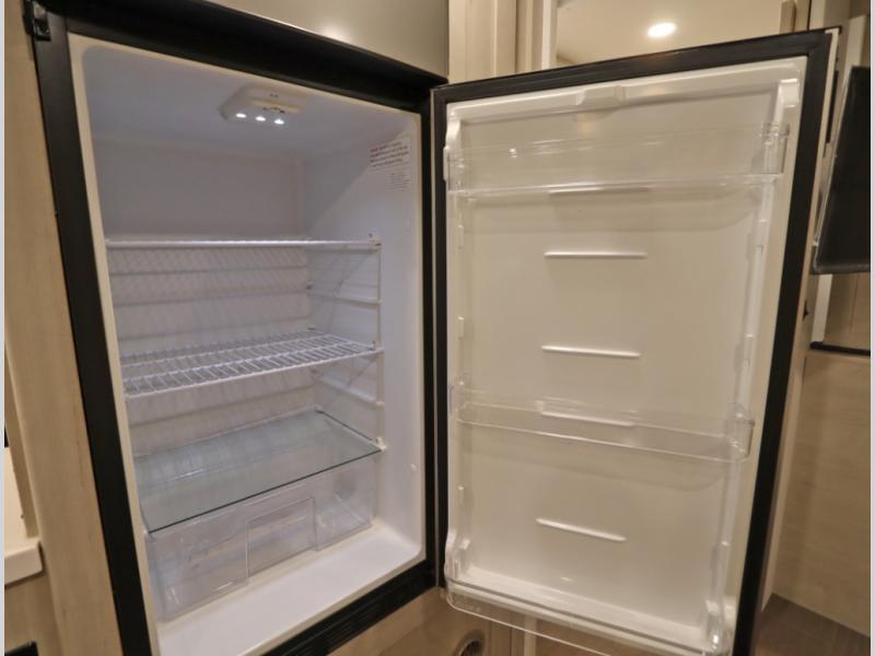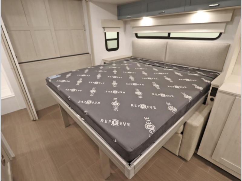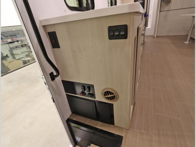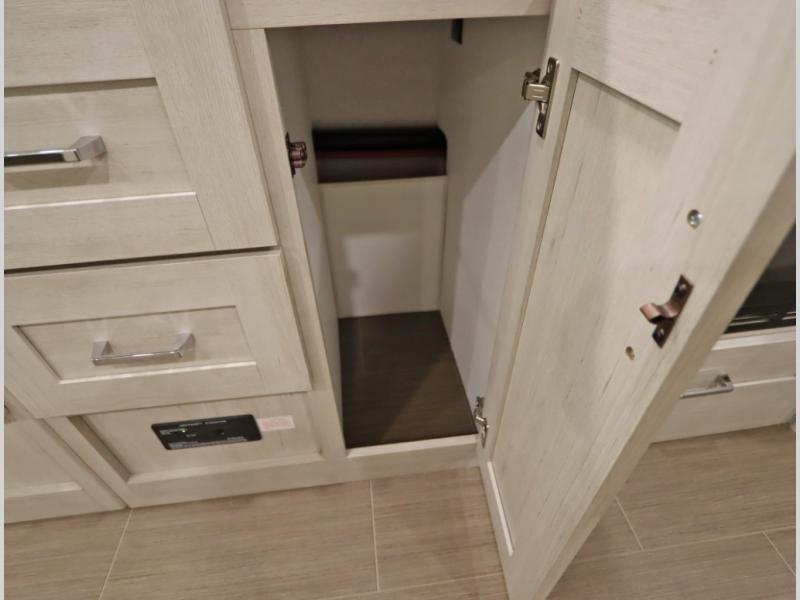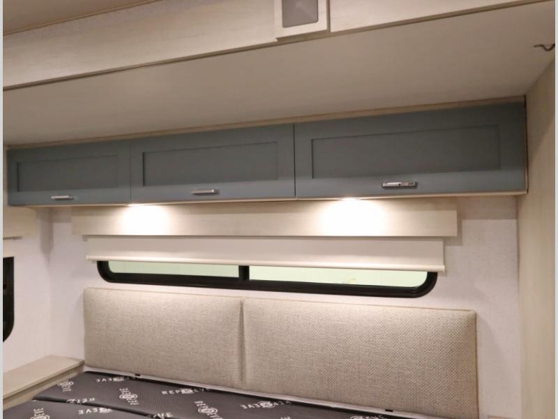 Convenient Amenities: The convection microwave with a built-in air fryer saves space, while flat floor designs enhance movement throughout the coach.