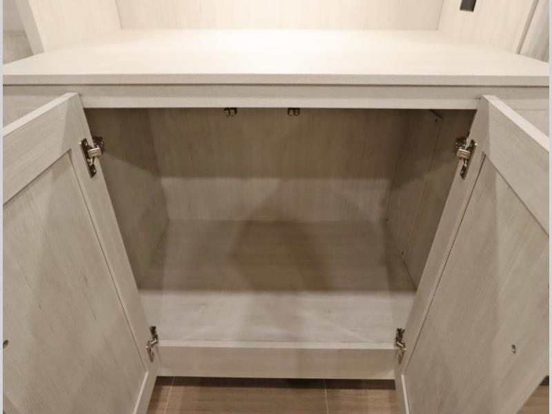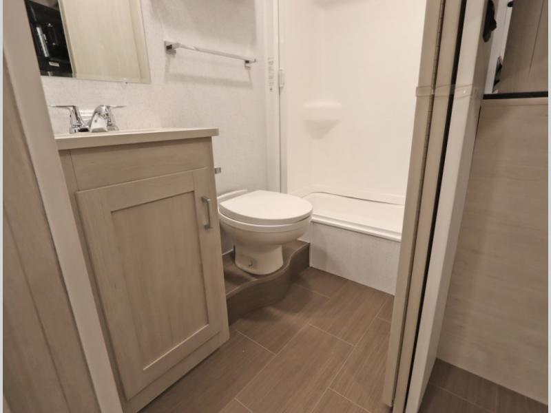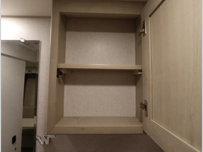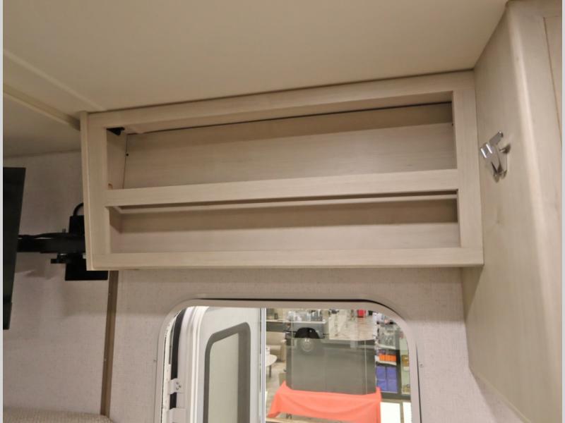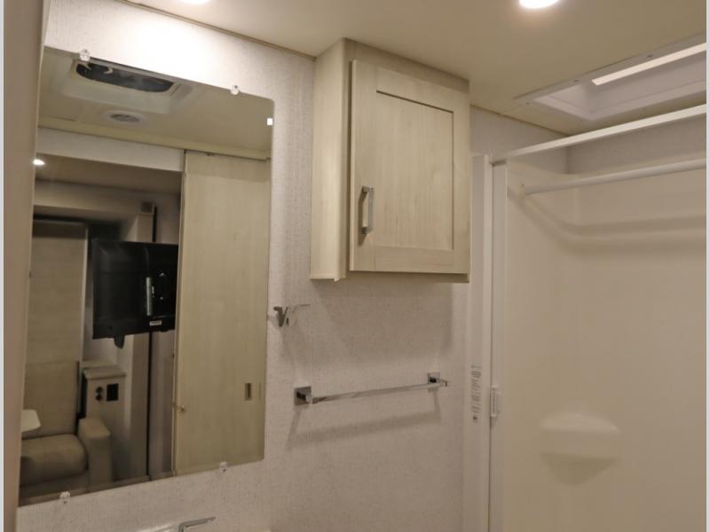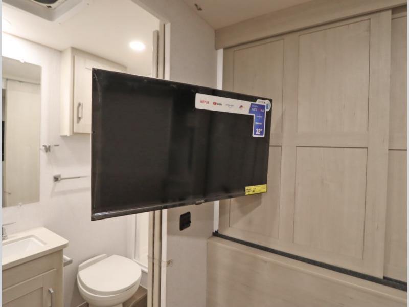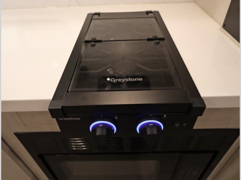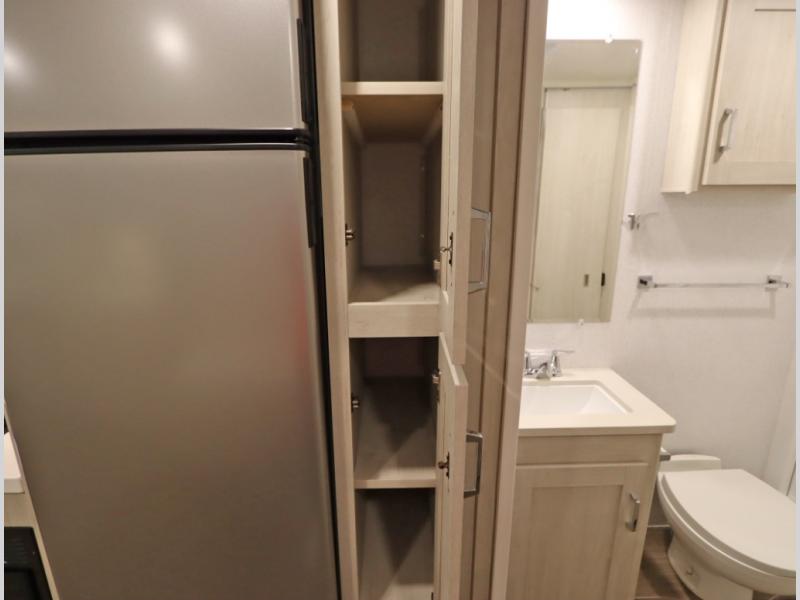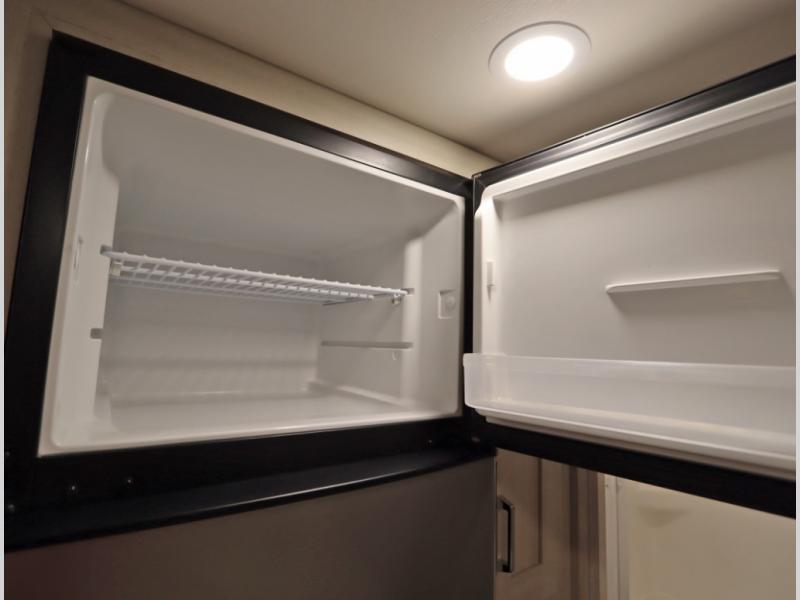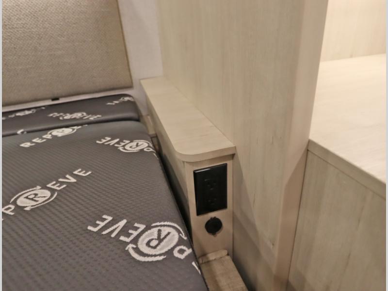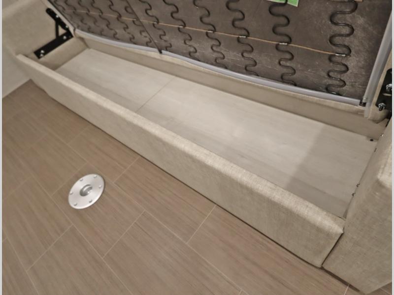 Convenient Amenities: The convection microwave with a built-in air fryer saves space, while flat floor designs enhance movement throughout the coach.