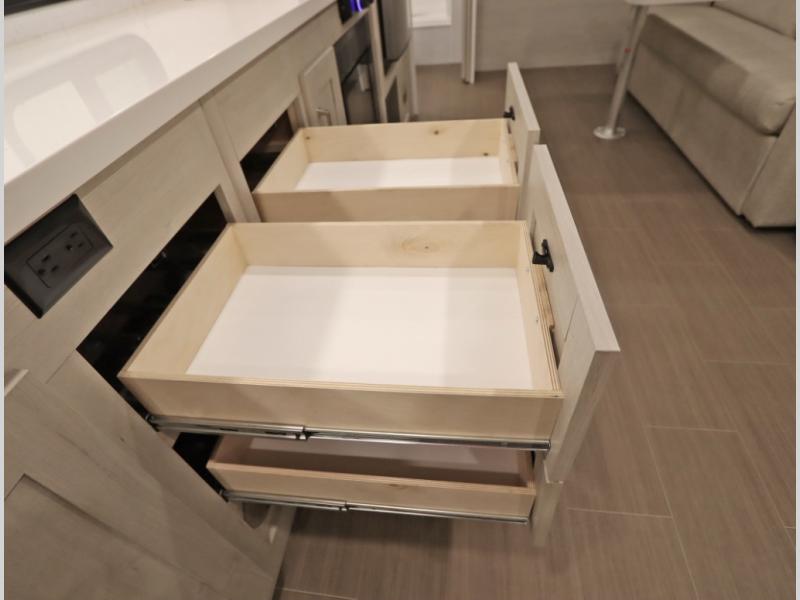 Best-in-Class Kitchen: Equipped with premium kitchen features including solid surface countertops and an industry exclusive coffee bar and under cabinet storage for a beverage fridge, the Sunflyer makes meal prep a breeze.