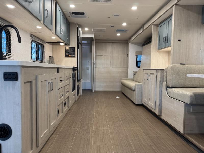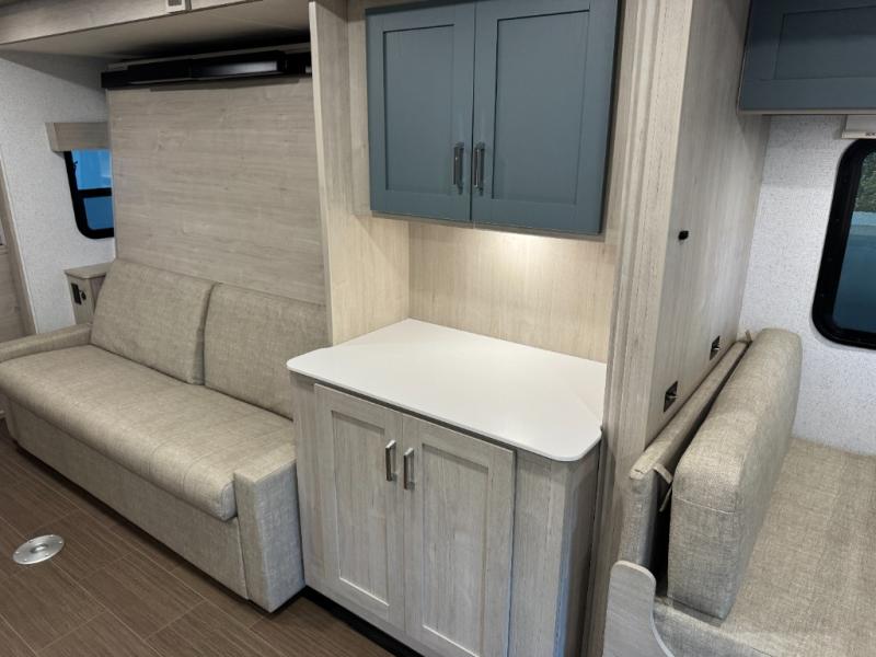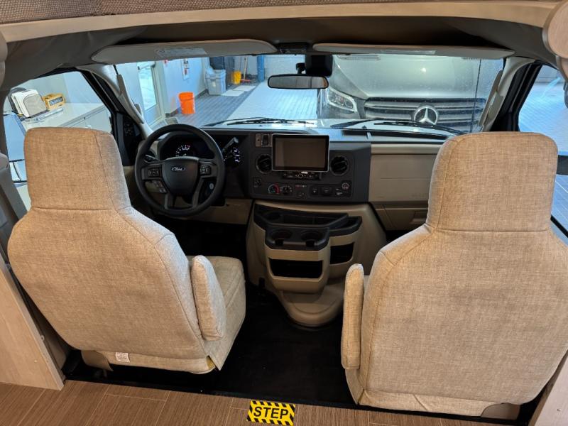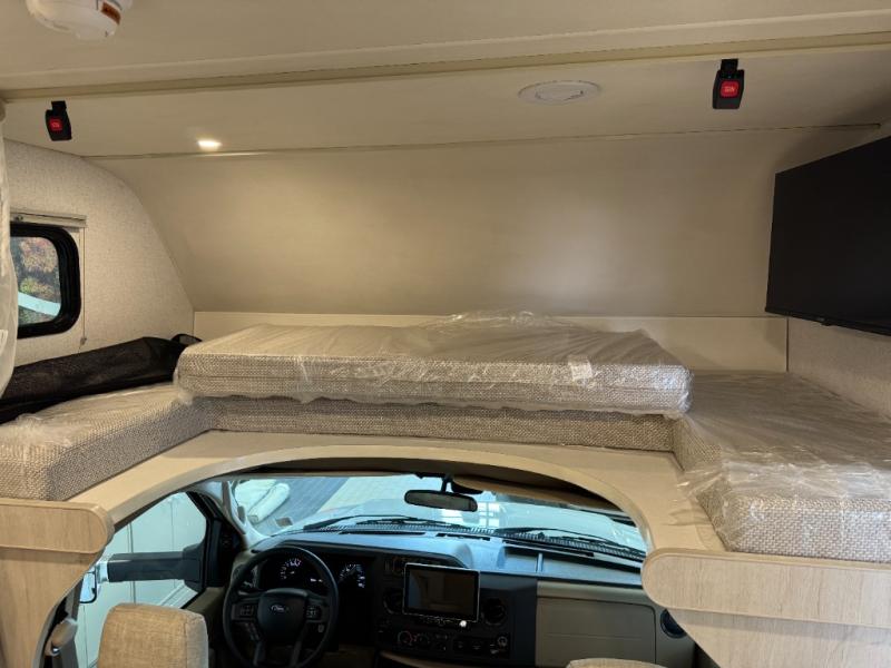 With any Winnebago Sunflyer Class C gas motorhome, you get a confident, road-ready build that’s focused on real-world travel ease and long-term durability. Standard highlights across the lineup include a Ford chassis, an 8,000 lb. trailer hitch, 4-wheel ABS brakes, LED high-performance headlamps, a 7-pin trailer wiring harness connector, premium high-gloss fiberglass skin, a molded front cap, a powered patio awning with LED lighting, and solar prep. The result is a Class C that feels composed on the highway and effortless at the campsite, with the kind of practical exterior and chassis-minded upgrades that make every trip smoother before you even step inside.