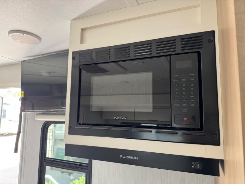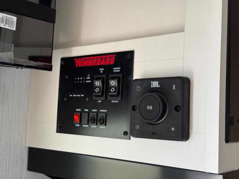 With any Thrive travel trailer by Winnebago, you can camp with functionality, comfort, and convenience! The tinted and frameless front window will be the first thing that catches your eye, and the fiberglass sidewalls with Azdel Onboard provide a durable trailer made to last. There is also an exterior ladder, along with front radius profile lights, power stabilizer jacks, and a powered awning with LED lighting to name a few exterior features. You will stay powered up by the 30-amp power cord and 200-watt solar panel, plus there is a tankless water heater for endless hot showers. Inside, you'll love the custom Winnebago furniture, carpetless side outs, molded fiberglass countertops, and residential recessed ceiling lights to keep your space well lit!