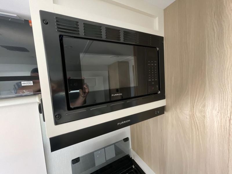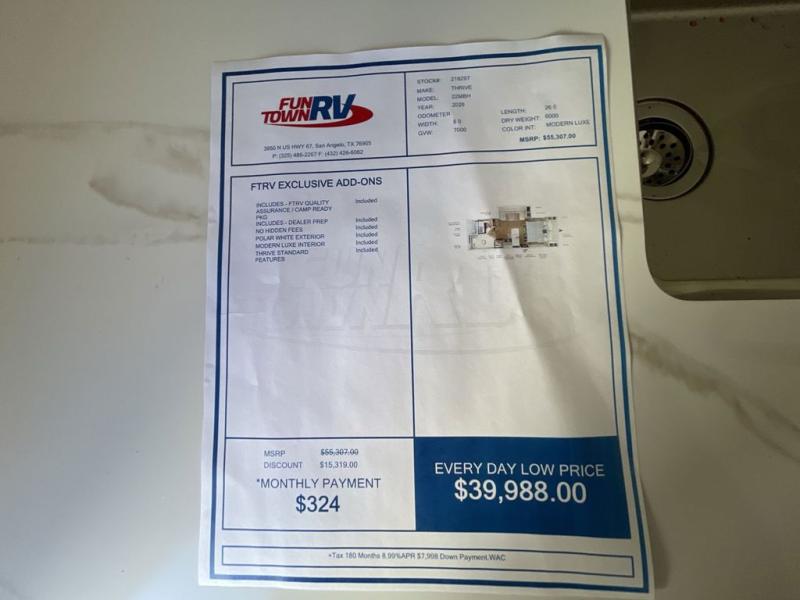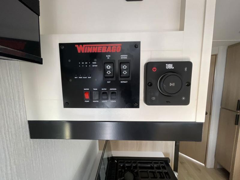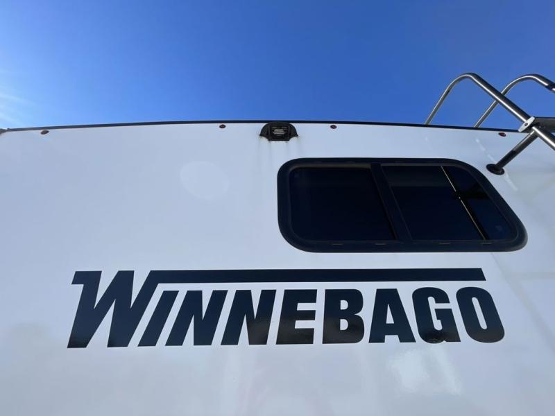 With any Thrive travel trailer by Winnebago, you can camp with functionality, comfort, and convenience! The large front viewing window with strike guard will be the first thing that catches your eye, and the fiberglass sidewalls with Azdel Onboard provide a durable trailer made to last. There is also an exterior ladder, along with front radius profile lights, power stabilizer jacks, and a powered awning with LED lighting to name a few exterior features. You will stay powered up by the 30-amp power cord and 200-watt solar panel, plus there is a tankless water heater for endless hot showers. Inside, you'll love the custom Winnebago furniture, carpetless side outs, molded fiberglass countertops, and residential recessed ceiling lights to keep your space well lit!