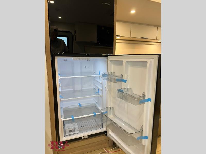 With any Thrive travel trailer by Winnebago, you can camp with functionality, comfort, and convenience! The large front viewing window with strike guard will be the first thing that catches your eye, and the fiberglass sidewalls with Azdel Onboard provide a durable trailer made to last. There is also an exterior ladder, along with front radius profile lights, power stabilizer jacks, and a powered awning with LED lighting to name a few exterior features. You will stay powered up by the 30-amp power cord and 200-watt solar panel, plus there is a tankless water heater for endless hot showers. Inside, you'll love the custom Winnebago furniture, carpetless side outs, molded fiberglass countertops, and residential recessed ceiling lights to keep your space well lit!