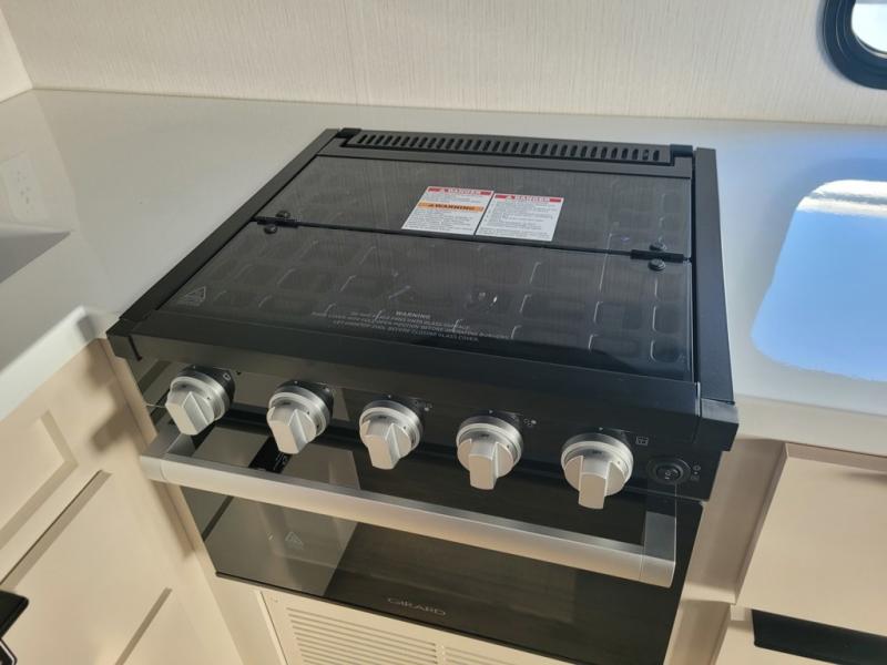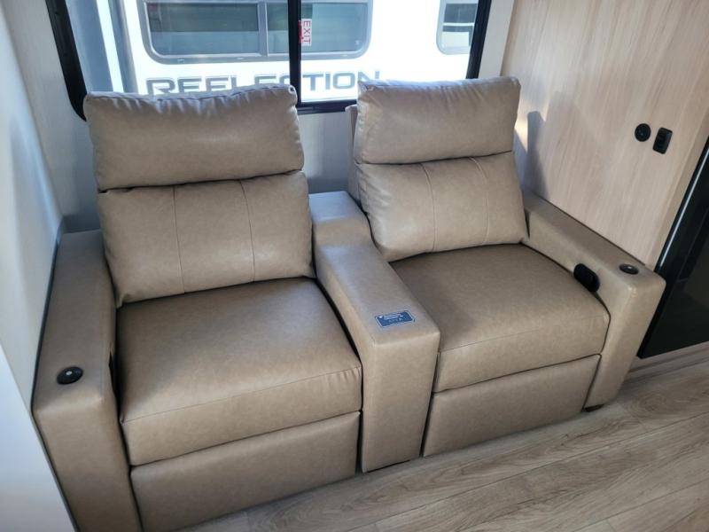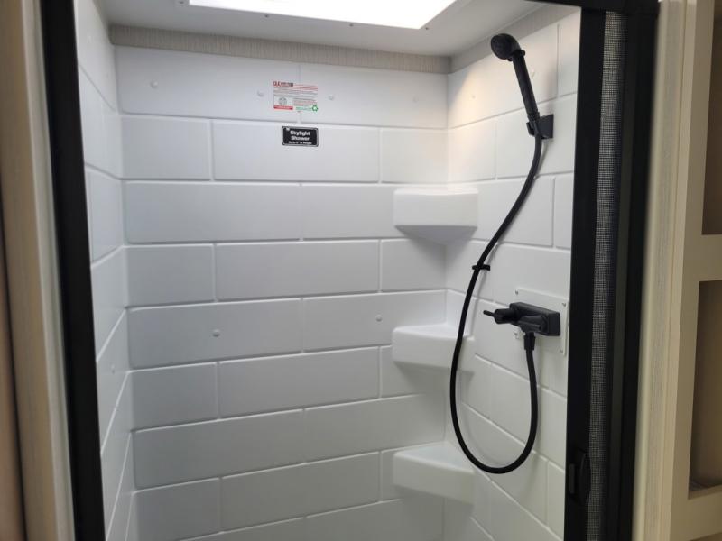 With any Thrive travel trailer by Winnebago, you can camp with functionality, comfort, and convenience! The large front viewing window with strike guard will be the first thing that catches your eye, and the fiberglass sidewalls with Azdel Onboard provide a durable trailer made to last. There is also an exterior ladder, along with front radius profile lights, power stabilizer jacks, and a powered awning with LED lighting to name a few exterior features. You will stay powered up by the 30-amp power cord and 200-watt solar panel, plus there is a tankless water heater for endless hot showers. Inside, you'll love the custom Winnebago furniture, carpetless side outs, molded fiberglass countertops, and residential recessed ceiling lights to keep your space well lit!