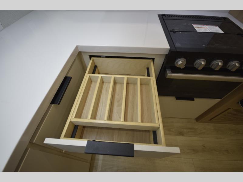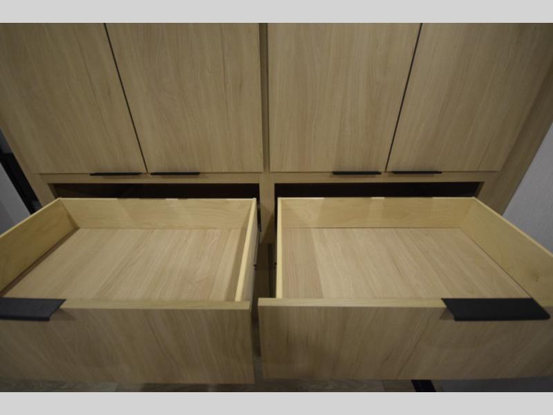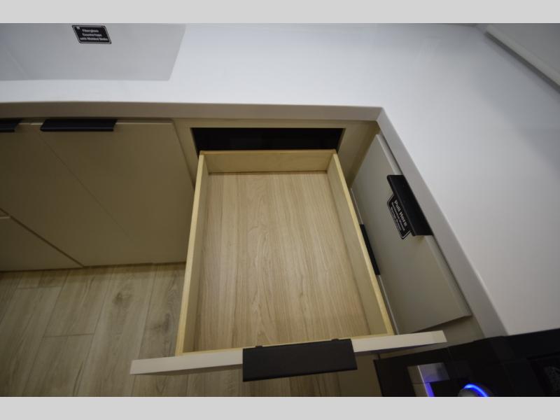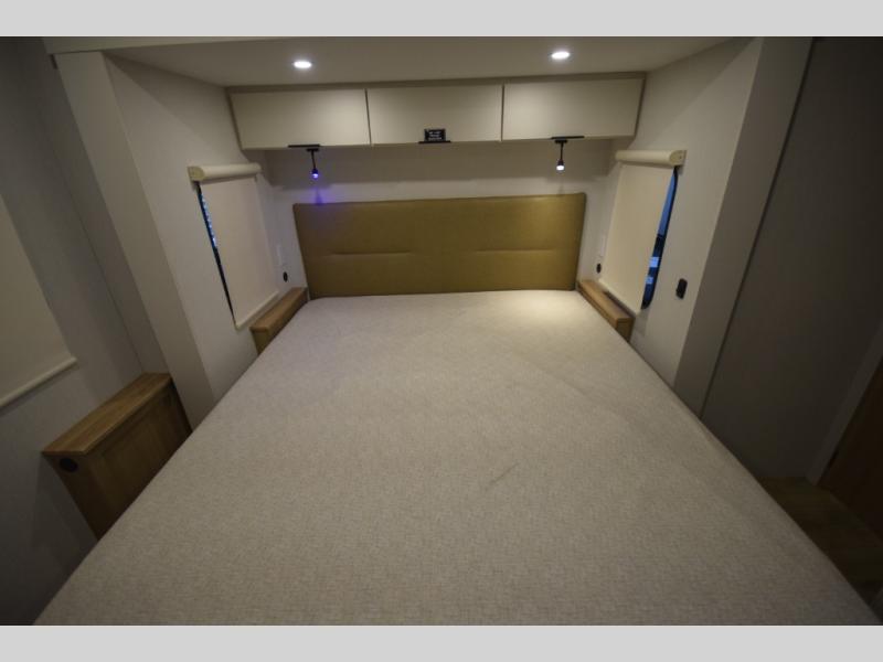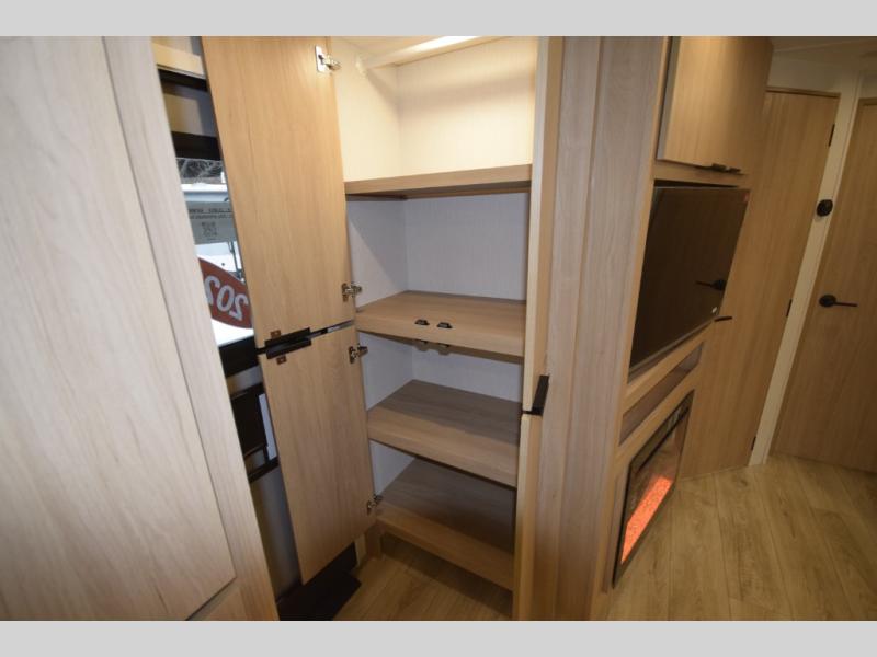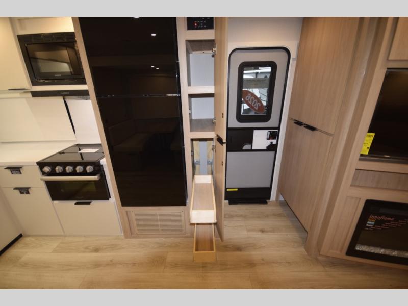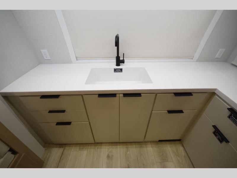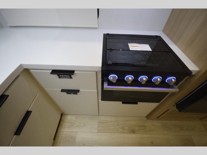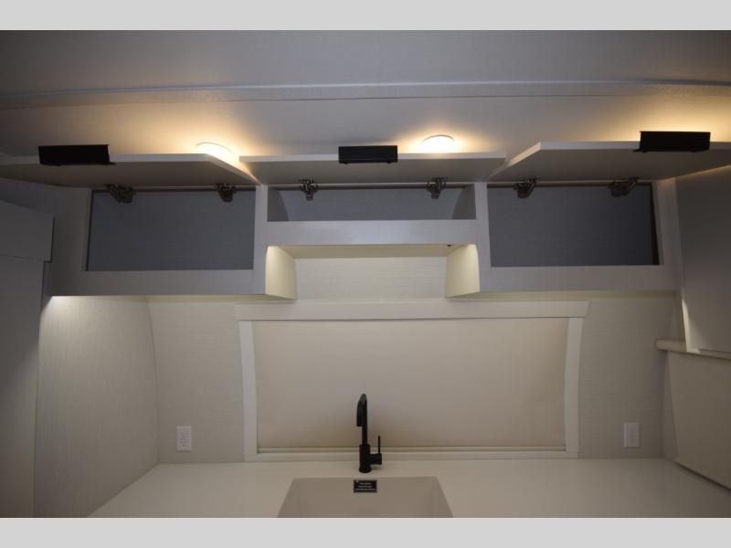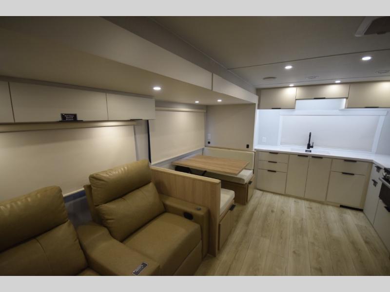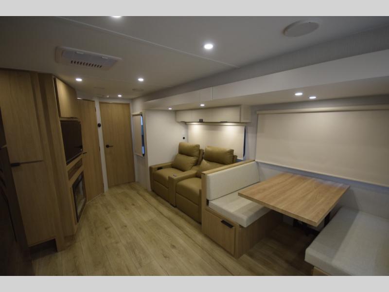 Step inside to find a well-organized interior that balances function and relaxation. Whether you’re cooking meals in the fully equipped galley kitchen, enjoying a movie in the theater seating, or retreating to the rear private bedroom, every inch of the Thrive 26FKD is crafted for convenience, comfort, and modern camping lifestyles.