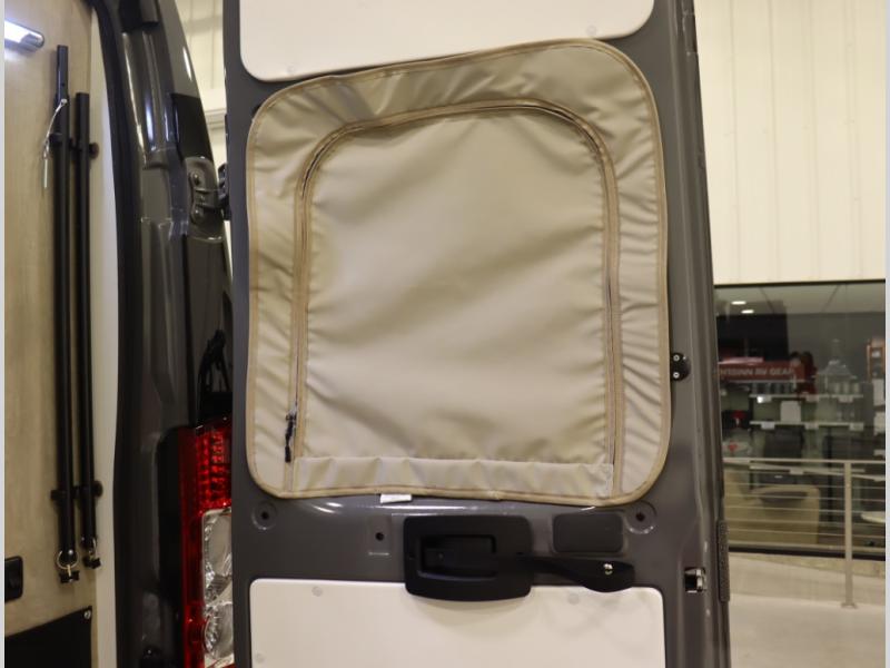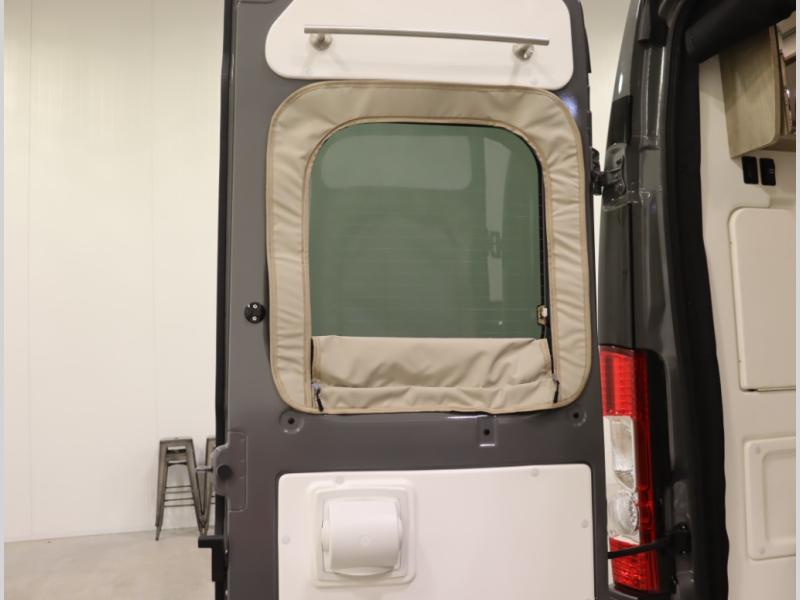 8. New thermal cab window coverings insulate the front cab of the van and provide near total blackout, with less than .5% of light intrusion