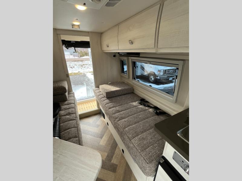 Each one of these Winnebago Travato Class B gas motorhomes are perfect for adventure seekers of all types! The rear annex extends your living space and gives you the versatility of hanging wet gear, using it as an outdoor shower, or an impromptu awning. They are powered by a Ram ProMaster 3.6L V6 gas engine with 280 HP and a 9-speed automatic transmission, and include a radio/rearview monitor system with navigation, USB ports, and more to make the drive easier than ever. The superior craftsmanship consists of a Truma Combi G Comfort Plus heating system that can run off of propane or electricity, aluminum running boards with logoed tread, ground-effect lighting and pet loop attachment so even your furry friends can come along. You will also find RAM Tough-Track Mounts throughout for your gear, tinted coach windows and blackout cassette shades for added privacy, plus a 24" HDTV and Bluetooth soundbar to ensure you'll never go bored!