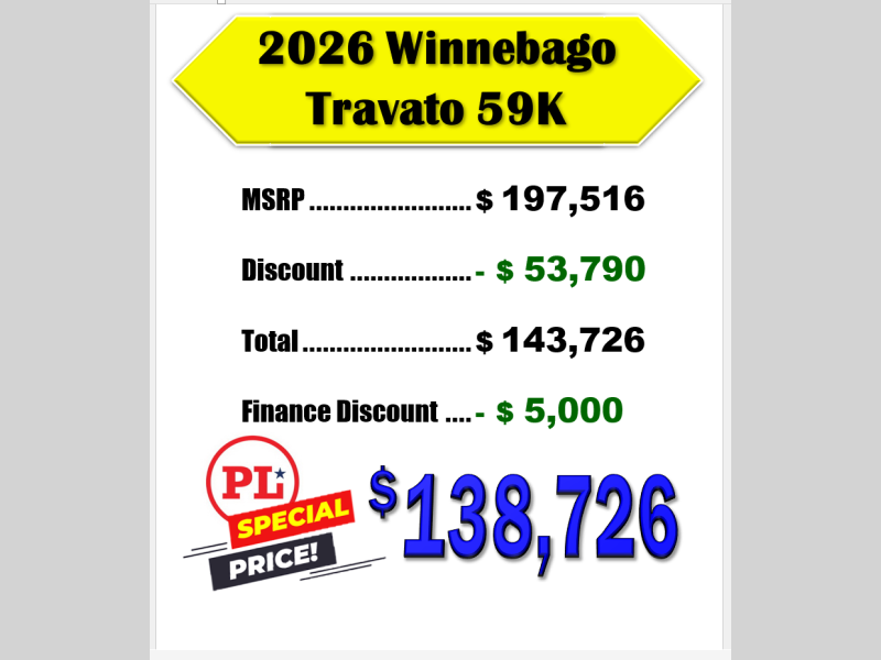 New 2026 Winnebago Travato 59K Motor Home Class B