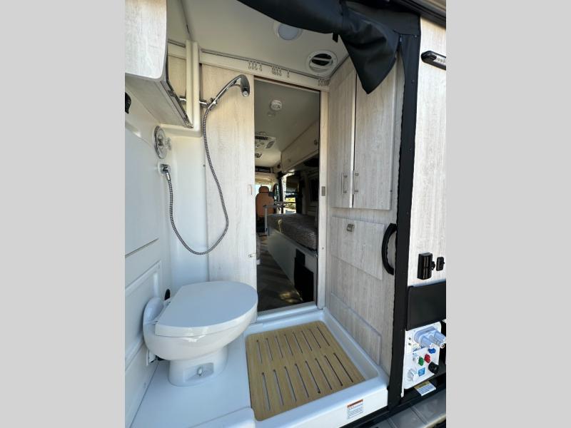 Each one of these Winnebago Travato Class B gas motorhomes are perfect for adventure seekers of all types! The rear annex extends your living space and gives you the versatility of hanging wet gear, using it as an outdoor shower, or an impromptu awning. They are powered by a Ram ProMaster 3.6L V6 gas engine with 280 HP and a 9-speed automatic transmission, and include a radio/rearview monitor system with navigation, USB ports, and more to make the drive easier than ever. The superior craftsmanship consists of a Truma Combi G Comfort Plus heating system that can run off of propane or electricity, aluminum running boards with logoed tread, ground-effect lighting and pet loop attachment so even your furry friends can come along. You will also find RAM Tough-Track Mounts throughout for your gear, tinted coach windows and blackout cassette shades for added privacy, plus a 24" HDTV and Bluetooth soundbar to ensure you'll never go bored!