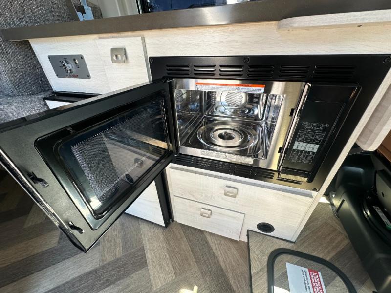 Don't pass up your chance to travel in true luxury with this motorhome! After a long day of traveling, you can rest up on one of the two twin beds which can be converted into a 74" x 76" bed with the flex bed system. Freshen up in the rear 25" x 43" wet bath with a fold down lavatory sink and a wardrobe to store your clothes and towels, plus sliding doors for privacy. You don't have to eat fast food while on the road either, thanks to the single burner induction cooktop and single door 4.3 cu. ft. compressor-driven refrigerator/freezer, plus you have a flip-up countertop extension to make your meal prepping easier. The adjustable/removable table and mount makes it easy to eat your meals in different areas of the motorhome too.