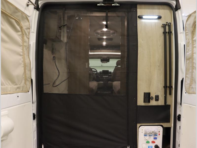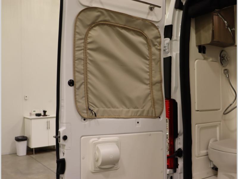 8. New thermal cab window coverings insulate the front cab of the van and provide near total blackout, with less than .5% of light intrusion