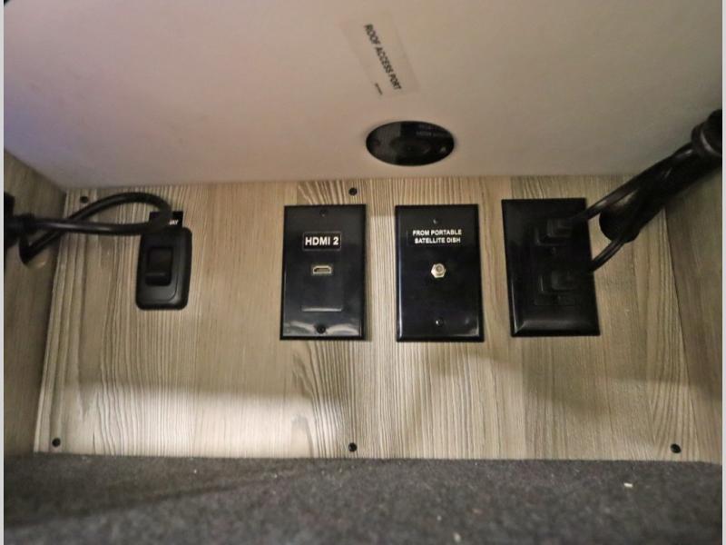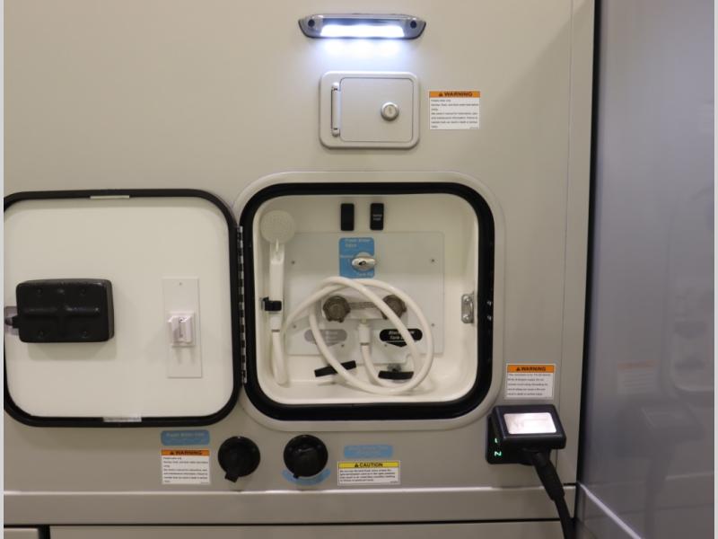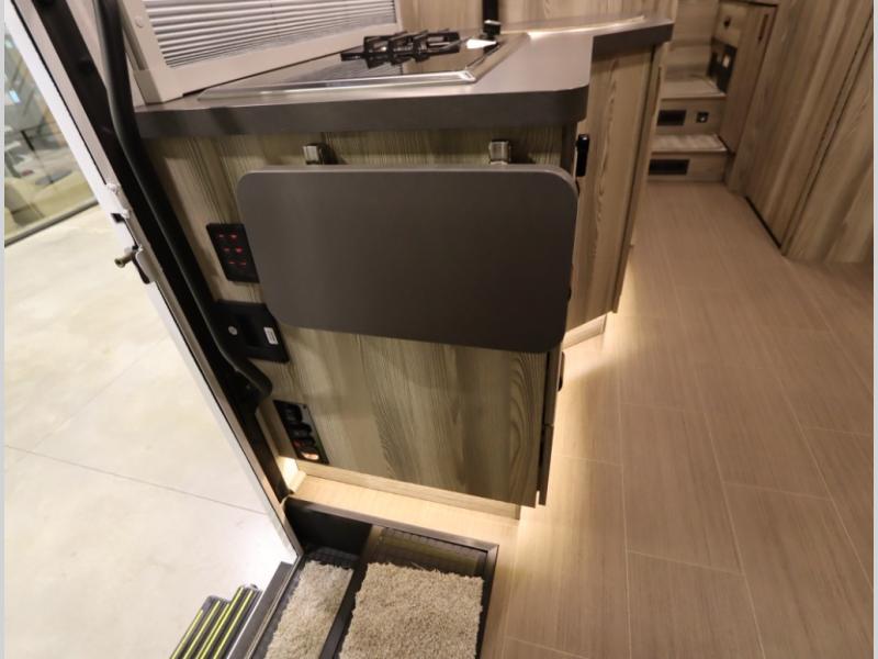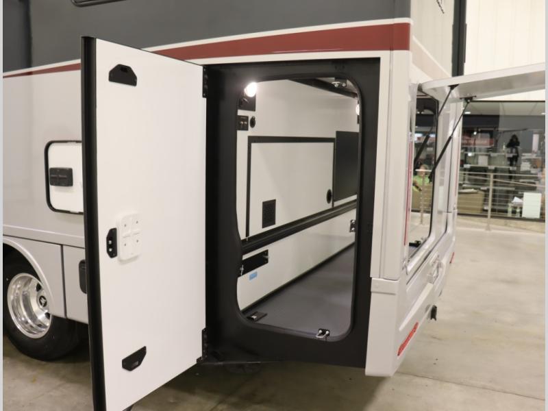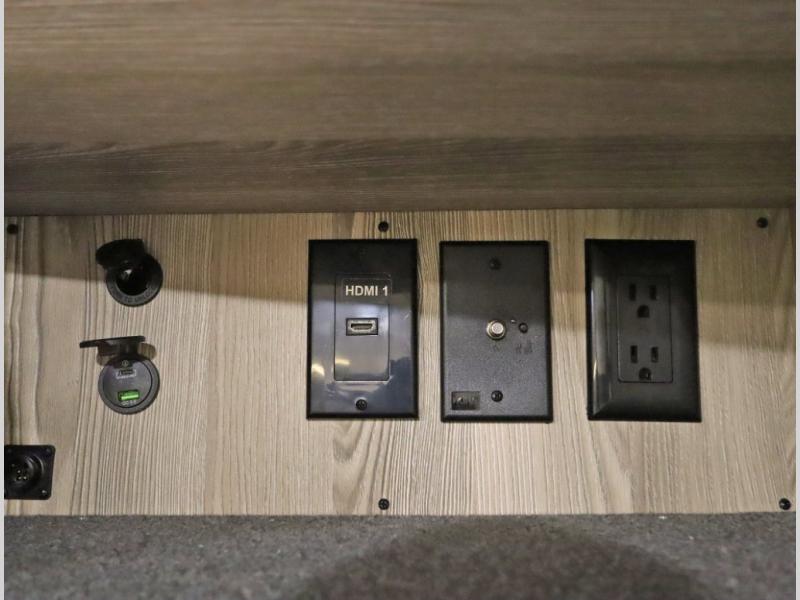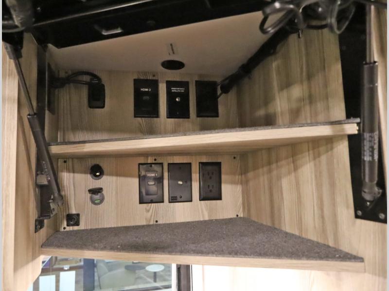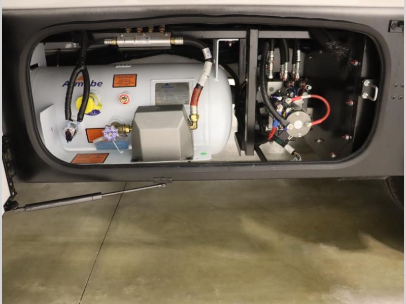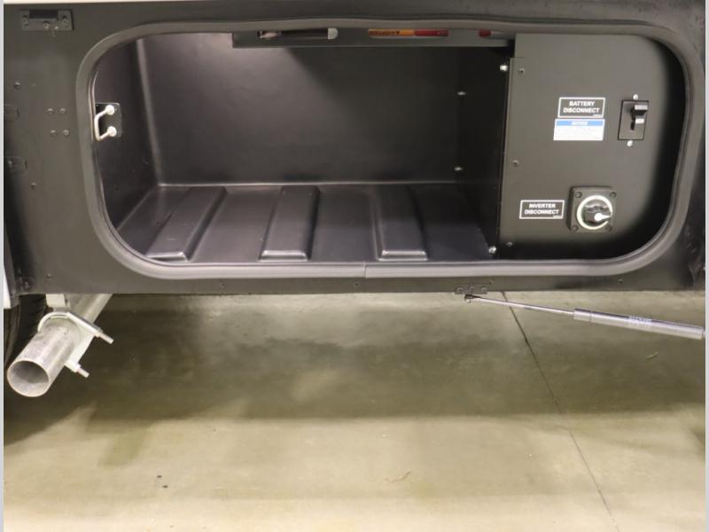 Inside the 24R you'll find a rear twin flex bed system and a home theater lounge setup across from the HDTV. The 24R includes a spacious gear garage with over 81 cu ft of basement storage. The 24R features an even larger inline kitchen and includes a 10 cubic foot compressor driven double door 12V refrigerator and freezer! Replenishing the Lithionics 320 ah battery setup are dual 120 watt solar panels, 240 total, which are also expandable! A 2,000 watt inverter powers household appliances off of the battery bank, including the AC and microwave convection oven!