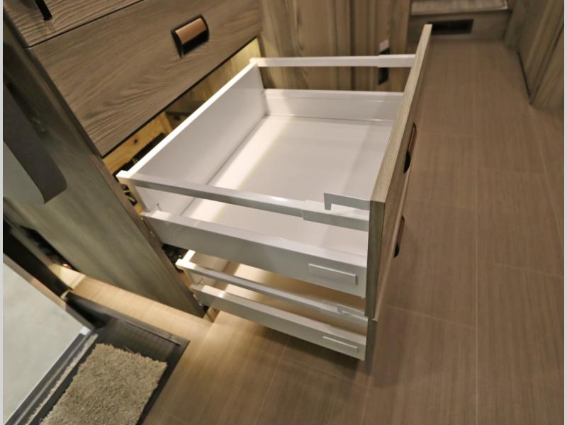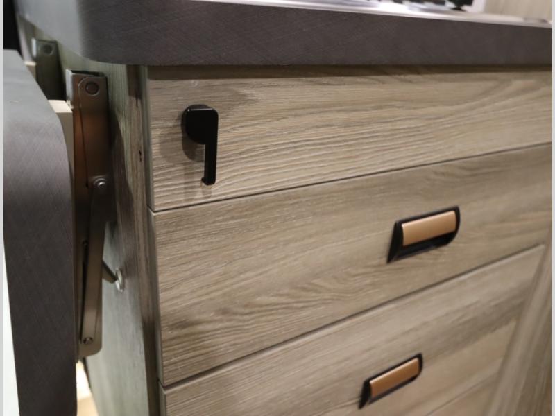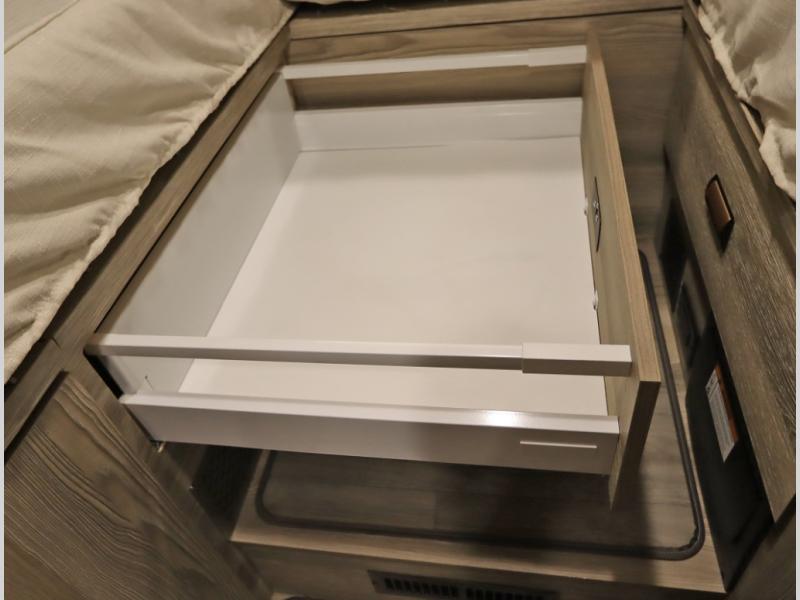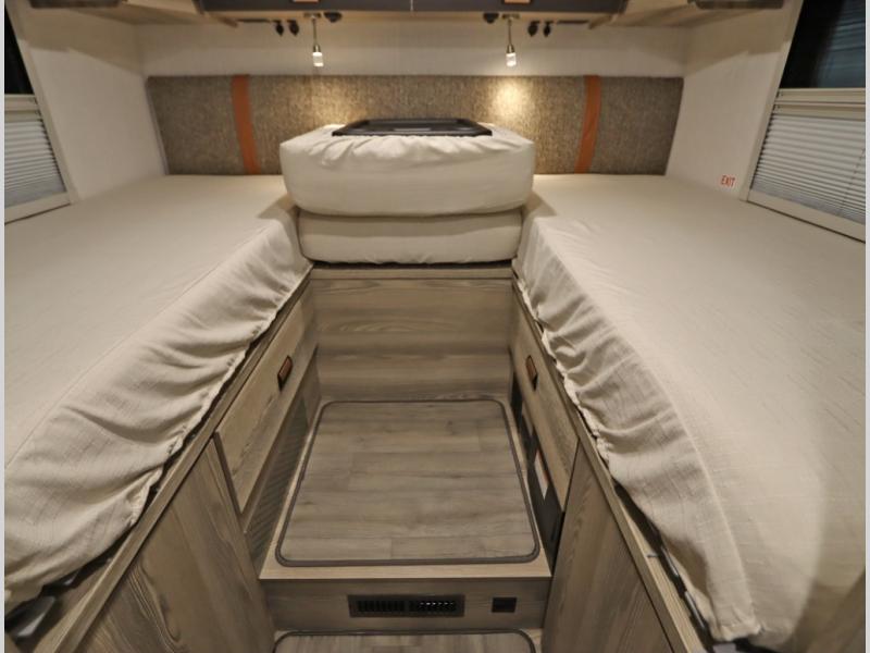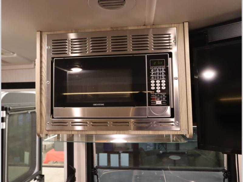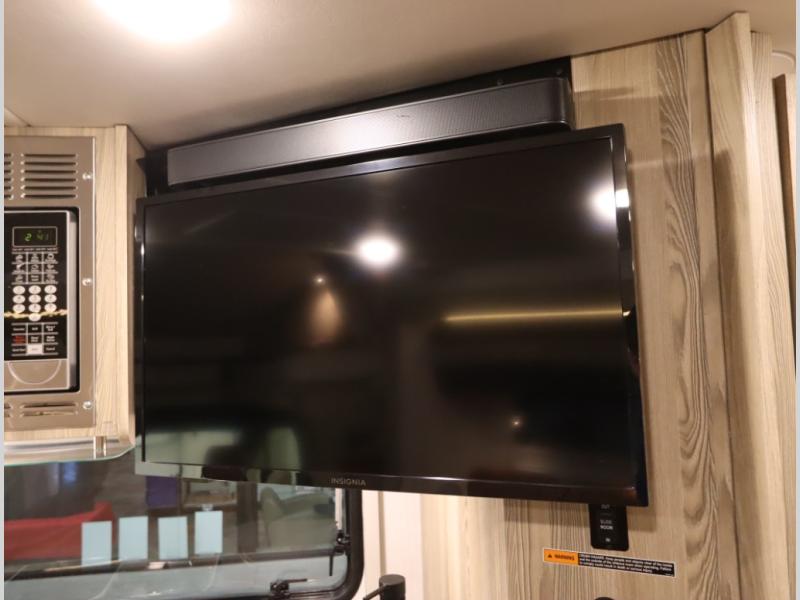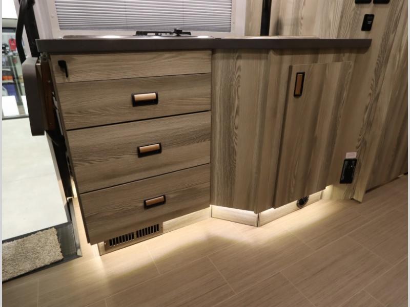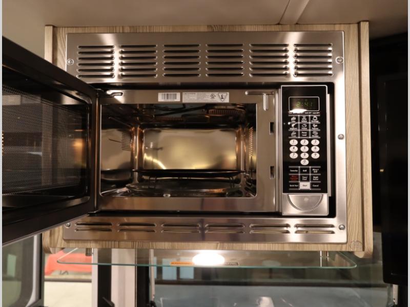 Inside the 24R you'll find a rear twin flex bed system and a home theater lounge setup across from the HDTV. The 24R includes a spacious gear garage with over 81 cu ft of basement storage. The 24R features an even larger inline kitchen and includes a 10 cubic foot compressor driven double door 12V refrigerator and freezer! Replenishing the Lithionics 320 ah battery setup are dual 120 watt solar panels, 240 total, which are also expandable! A 2,000 watt inverter powers household appliances off of the battery bank, including the AC and microwave convection oven!