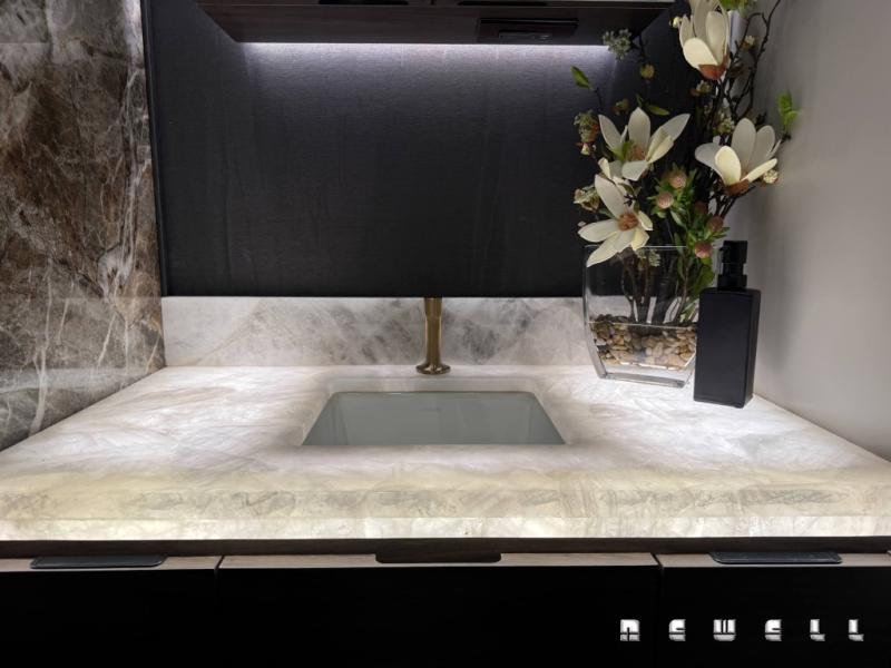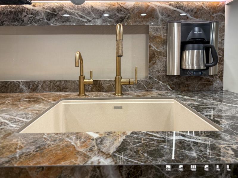 Expandable dinette with premium quartz topPremium porcelain heated tile flooring