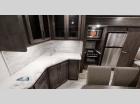 Across from the sofa, a booth dinette provides seating for meals, games, or work, and easily converts into a 42" x 76" bed for additional sleeping space.