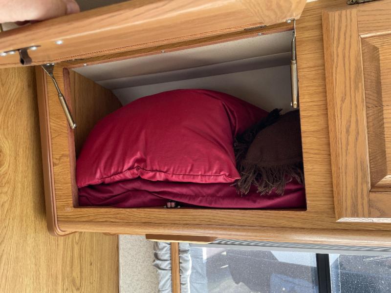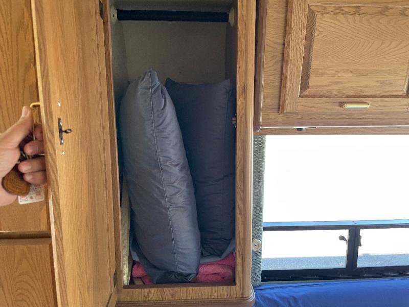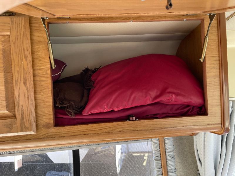 The interior is clean, organized, and fully equipped—you’ll find bedding, linens, dishes, appliances, and more. All you’ll need to bring are your groceries! With 74,000 miles on the odometer, this coach is travel-ready and waiting for you to hit the road in comfort and style.