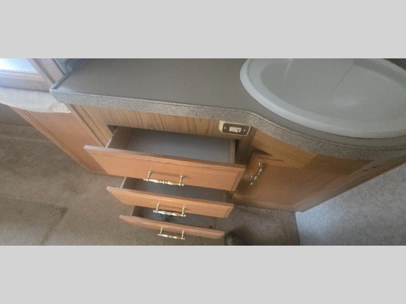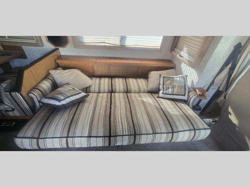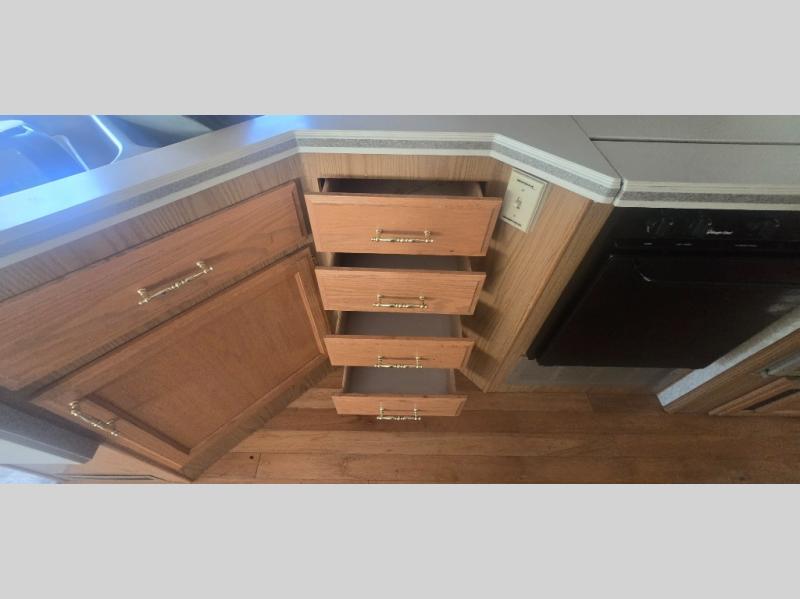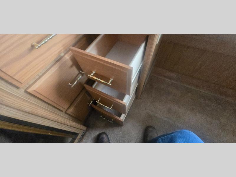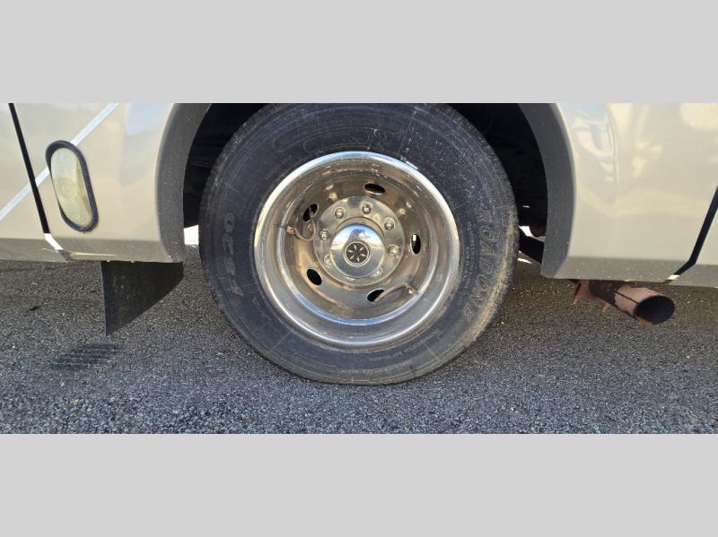 Class A w/Multiple Sleeping Opts. Rear Queen Bed w/Shirt Ward. Above Nightstands, Dresser w/TV Shelf, or Opt. Twin Beds or Side Queen Bed w/Lg. Ward., Nightstand and Dresser w/TV Shelf, Private Toilet Area, Cabinet or Opt. Washer/Dryer, Angle Shower, Sink, China Cabinet, Slideout Booth Dinette or Table & Chairs w/Sofa Bed, Swivel Chair w/Table, Dbl. Kitchen Sink, 3 Burner Range, Refrig., Opt. Side-By-Side, Pantry, Choice of Eng. & Chassis & More! Shown w/Chevy Specs., Ford Avail.