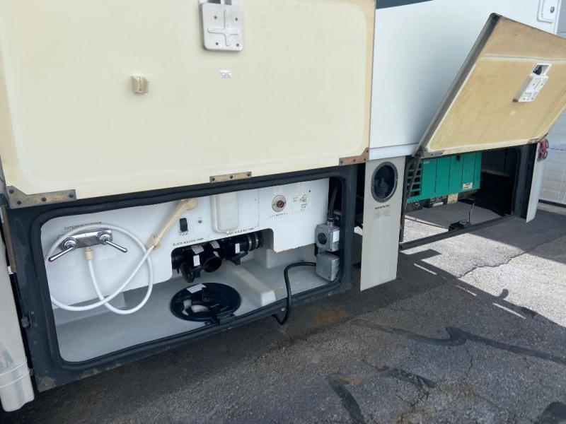 Standard equipment includes an Onan generator, roof air-conditioning, awning, and built-in color TV, all part of the base package.
