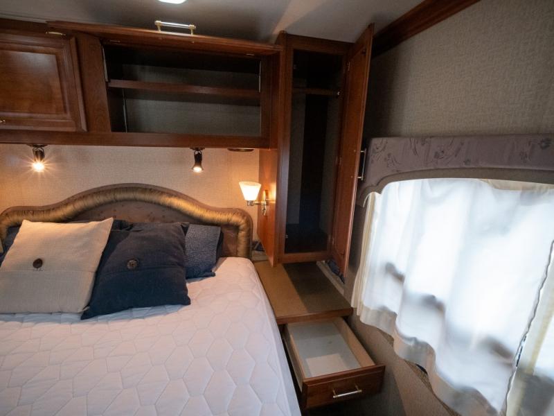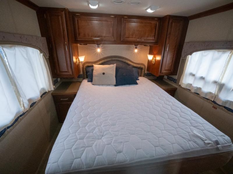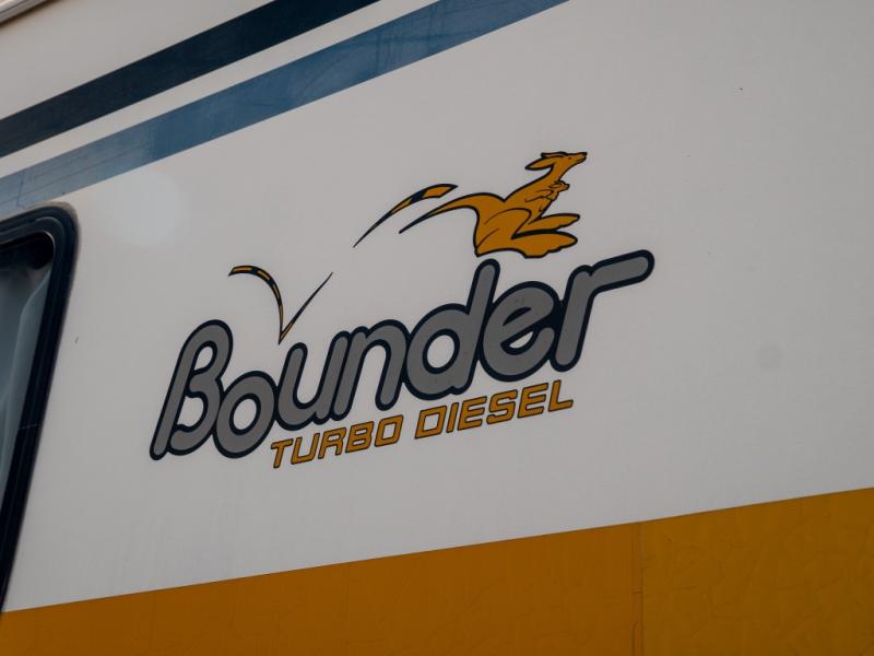 Single Slide Bounder Diesel w/Rear Queen Bed, Shirt Closets Above Nightstands, Wardrobe, TV, Side Isle Bath w/Angle Shower, Lav., Linen Cabinet, Pantry, Refrig., Opt. Side-By-Side or 4-Door, 3 Burner Range, Double Kitchen Sink, Swivel Chair or Opt. Recliner, Sofa Bed & Booth Dinette Slideout or Opt. Sofa Sleeper, Table & Chairs or Computer Workstation, 2nd Utility Cabinet & More.