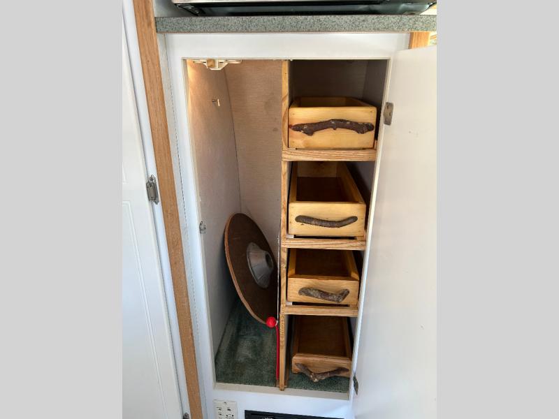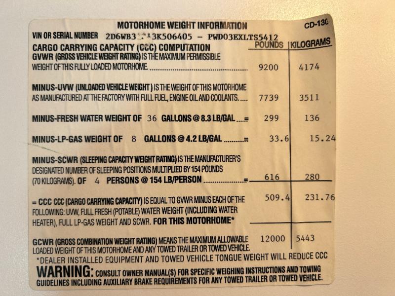 This rig has the storage bays stuffed with leveling devices, Hoses, Electrical Adapters, Power Cords and Water Hoses. Also comes with trailer hitch and towing lights socket Plus a Bicycle rack!