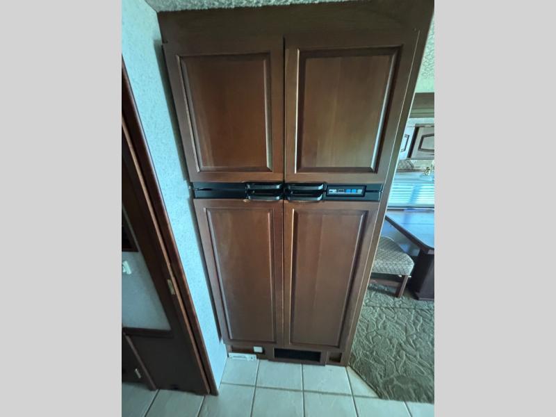 Step inside and take a look back at all of the convenient features that would make any journey enjoyable. The kitchen area features everything you need to prepare great meals on the go including a sink, a three burner range with microwave/convection oven, and a refrigerator/freezer. There is also plenty of storage for all of your dry and canned goods. Have a seat at the comfortable dinette, where you can enjoy meals with your family.