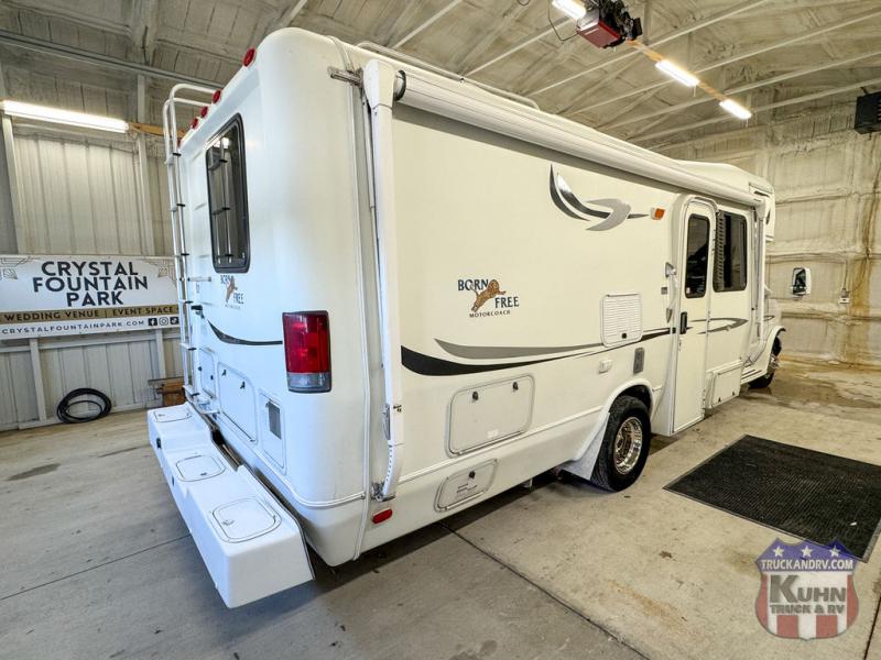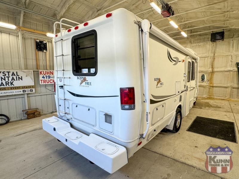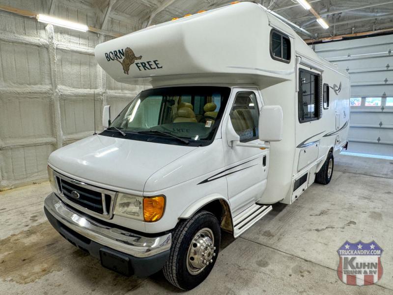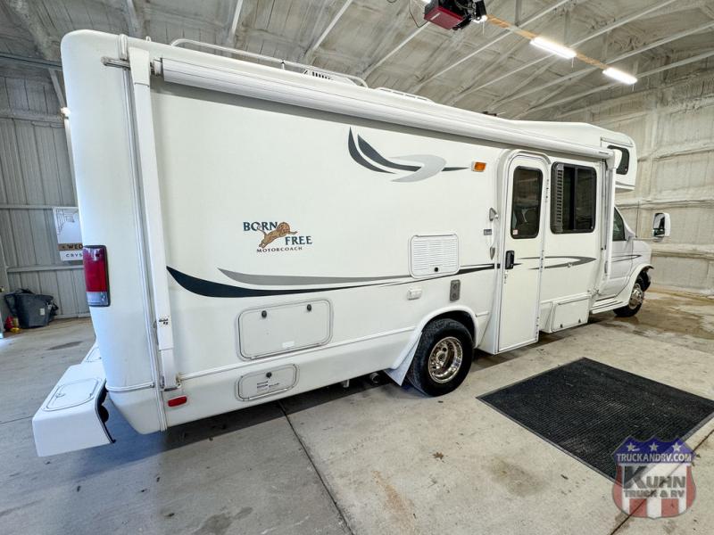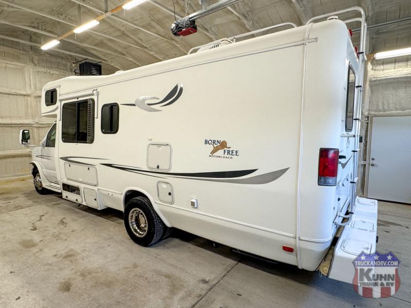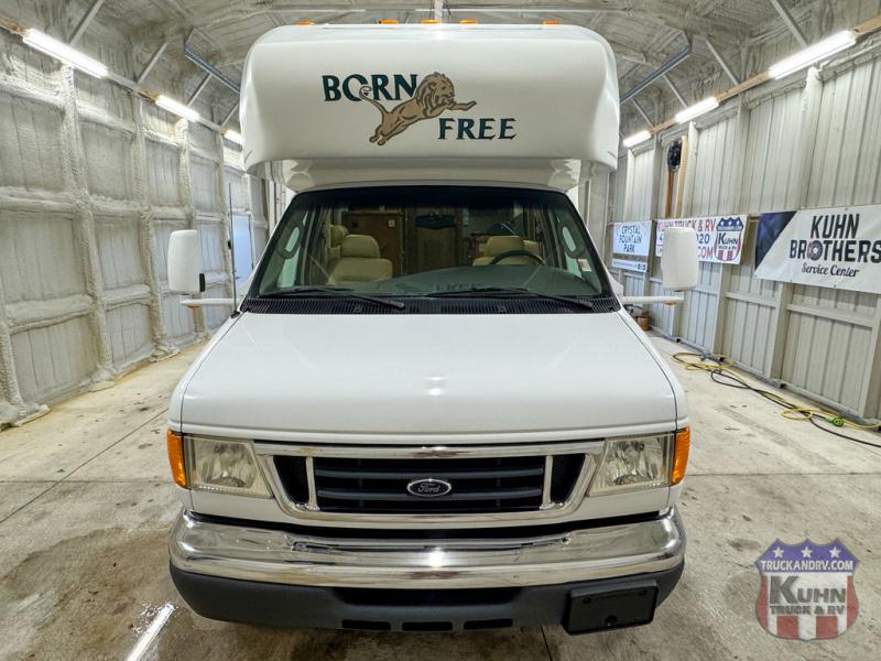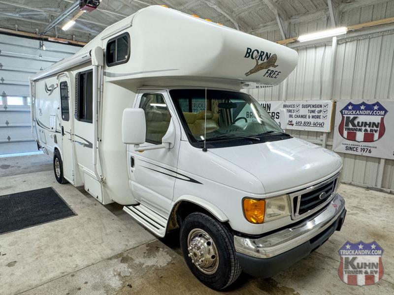 2004 Born Free 26RB - 26.5' bumper to bumper - 6.8L Triton V10 engine - Ford E450 chassis - 16 foot power awning - Tow package - 2 burner cooktop - Microwave/convection oven - The tires have date codes of 4521 - 4 seat belts - Generac 4k gas generator with 250 hours - Rooftop A/C - Ducted furnace - 24 inch LG flat screen TV - Holding tanks - Fully self contained - In the cabin area there are power windows, power locks, tilt, cruise, power heated mirrors, and CD player- This Born Free is ready to hit the highway!!
