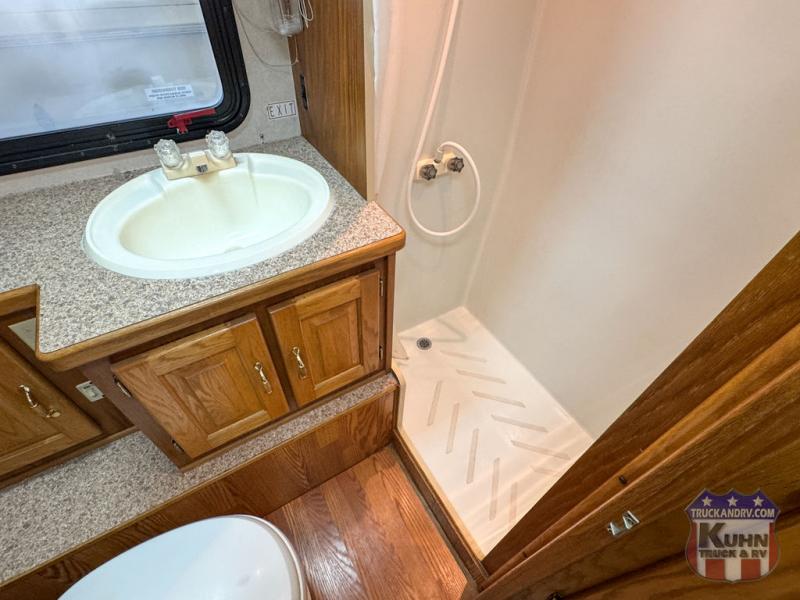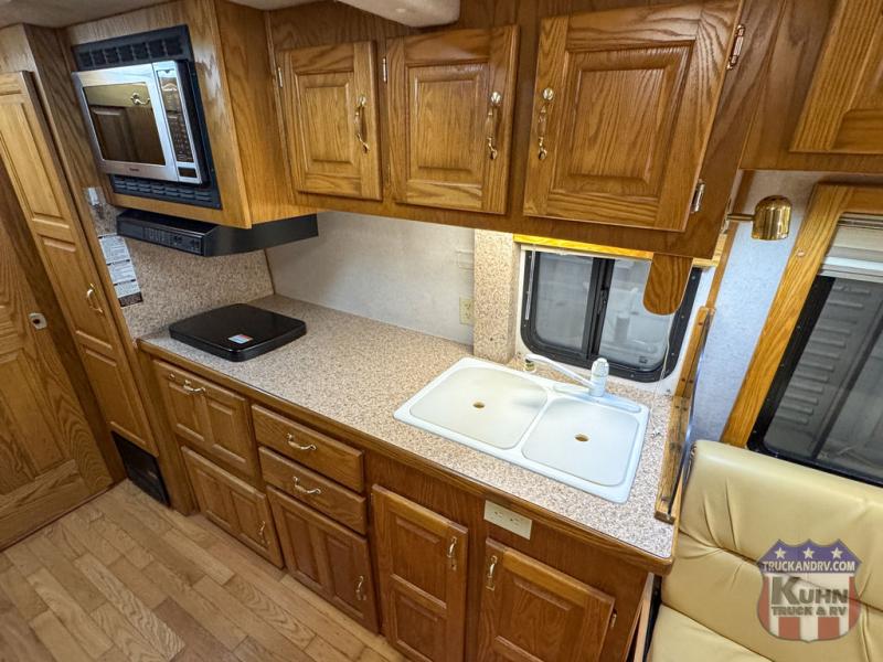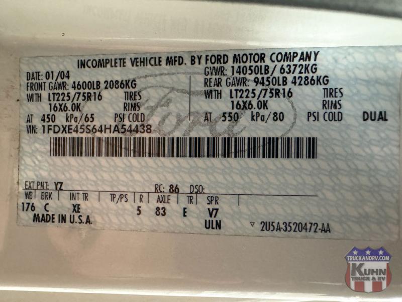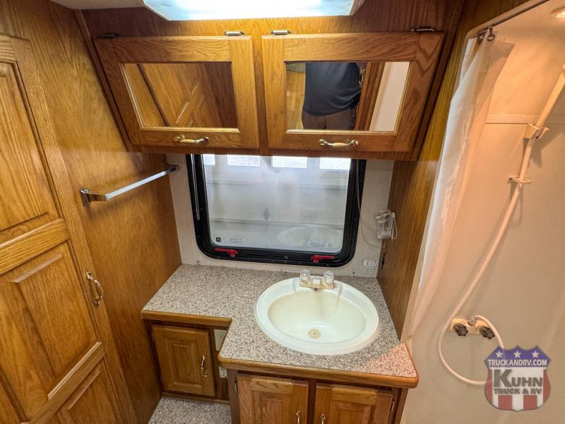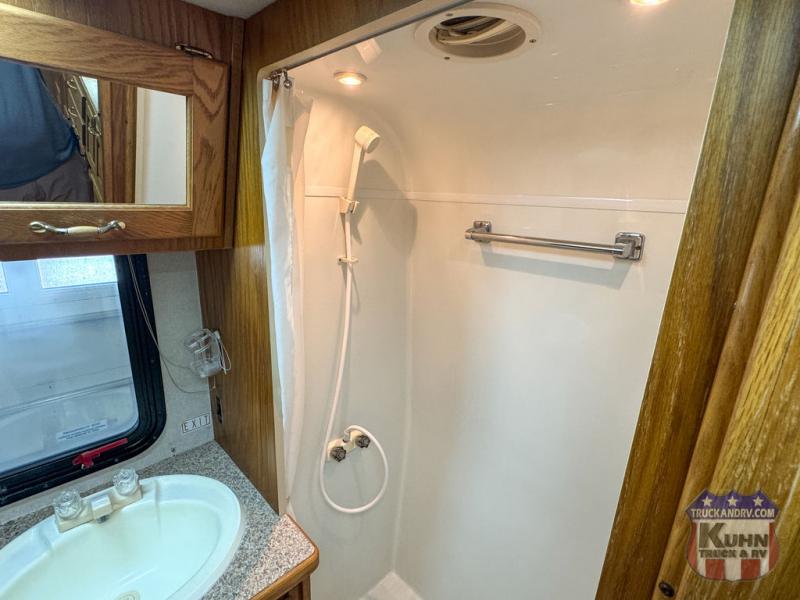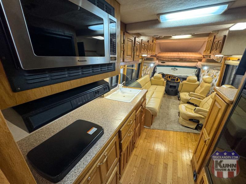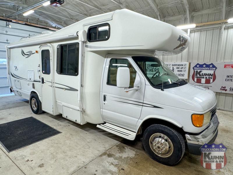 2004 Born Free 26RB - 26.5' bumper to bumper - 6.8L Triton V10 engine - Ford E450 chassis - 16 foot power awning - Tow package - 2 burner cooktop - Microwave/convection oven - The tires have date codes of 4521 - 4 seat belts - Generac 4k gas generator with 250 hours - Rooftop A/C - Ducted furnace - 24 inch LG flat screen TV - Holding tanks - Fully self contained - In the cabin area there are power windows, power locks, tilt, cruise, power heated mirrors, and CD player- This Born Free is ready to hit the highway!!