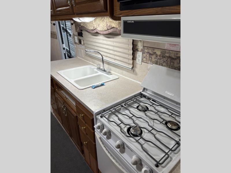 3" Vacubond Tapered Roof, 7 Feet Rear Awning, Deluxe Appliances, Diamond Kick Plate, Dual Battery Sliding Tray, Exterior Shower, Full Size Queen Deluxe Innerspring Mattress, Full Wall Slideout, Heated Basement Area For Holding Tanks, Laminated Foam Insulation Sidewalls, Floor., LPG Quick Connect For Accessories, Onan Generator, One Piece Rubber Roof, Quality Kenwood CD/Stereo, Seamless Siding, Systems Monitor Panel