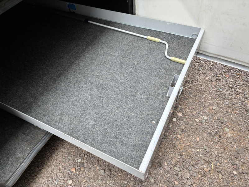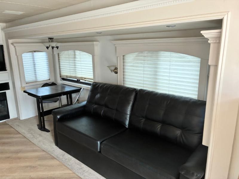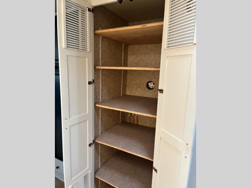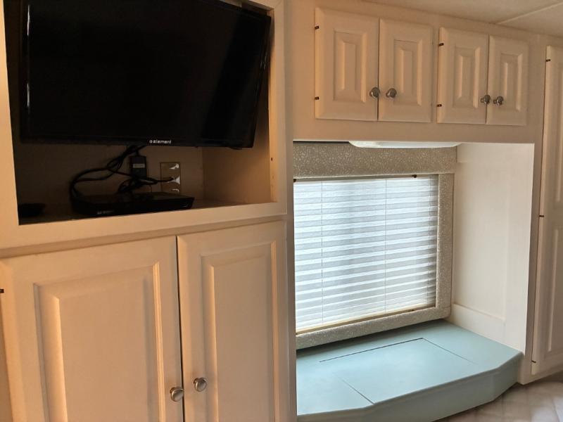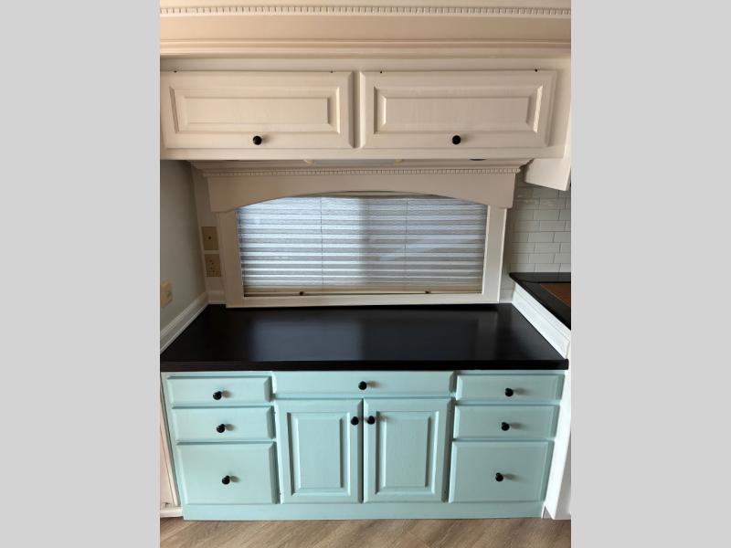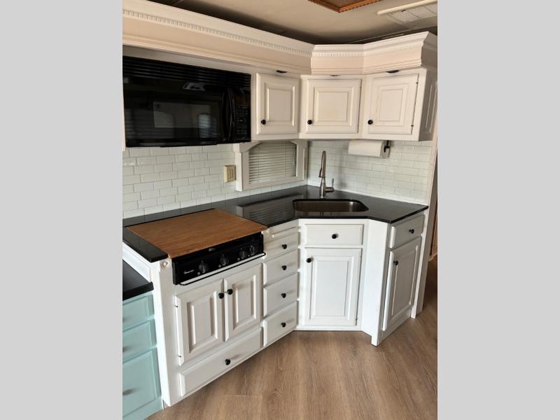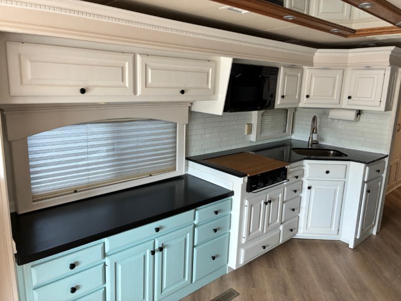 Step inside and take a look back at the complete remodel and all of the convenient features that would make any journey enjoyable. The kitchen area features everything you need to prepare great meals on the go including a sink, a three burner range with microwave/convection oven, and a 4 door refrigerator/freezer with ice maker. There is also plenty of storage for all of your dry and canned goods. Have a seat at the table with chairs, where you can enjoy meals with your family.