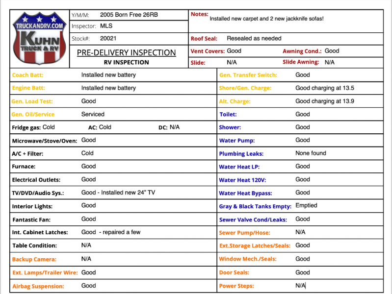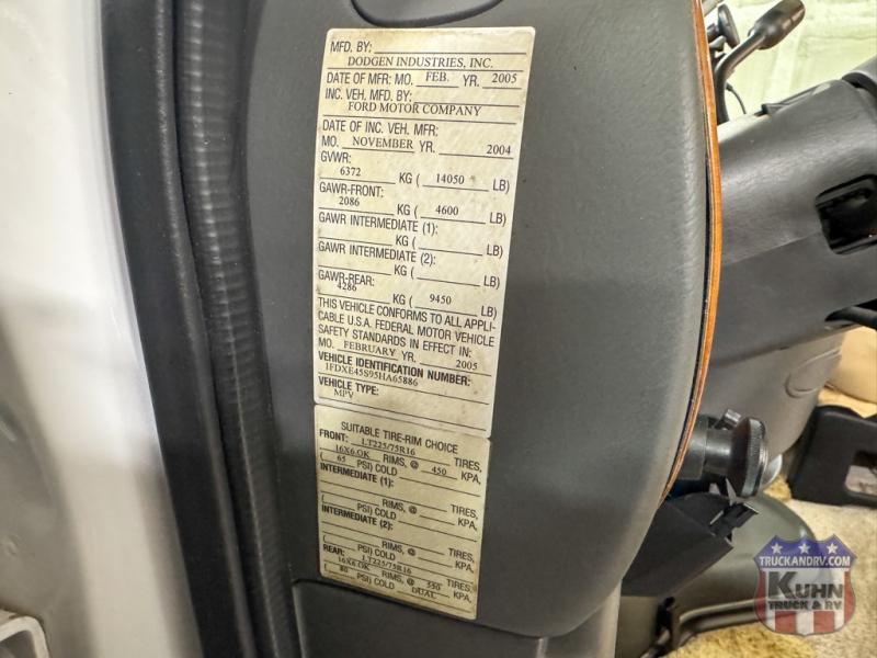 2005 Born Free 26RB - 26.5' bumper to bumper - 6.8L Triton V10 engine - Ford E450 chassis - 15' manual awning - Tow package - 3 burner LP cooktop - Microwave oven - The tires have date codes of 4122 - 2 seat belts - Generac 4k gas generator with 190 hours - Rooftop A/C - Ducted LP furnace - Flat screen TV w/ built in DVD player - Holding tanks - Fully self contained - In the cabin area there are power windows, locks, mirrors, tilt, and cruise - This Born Free is ready to be set free on your next adventure!
