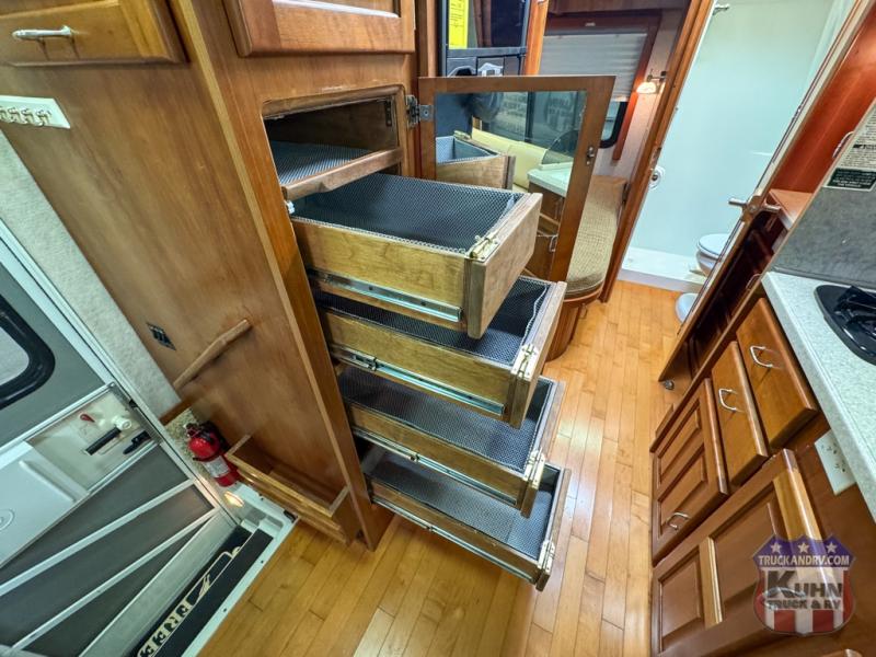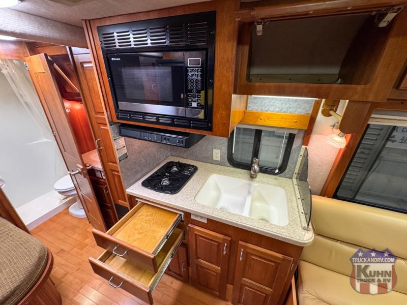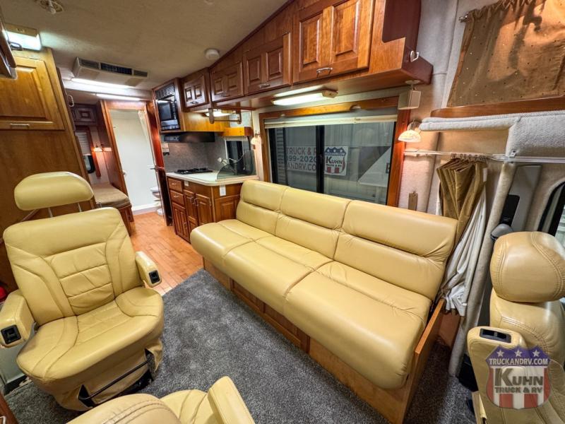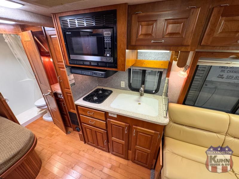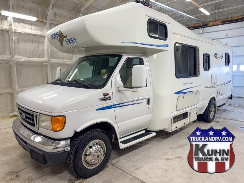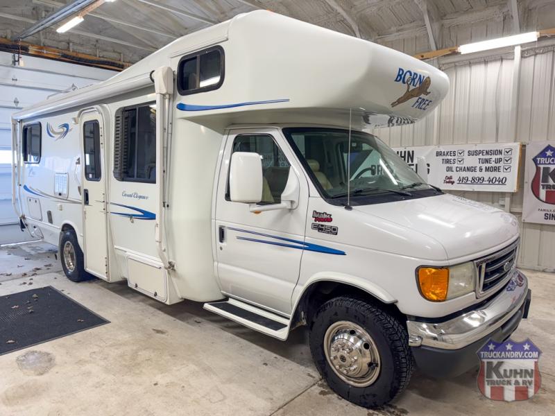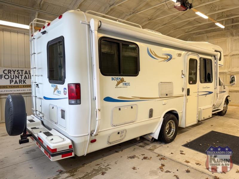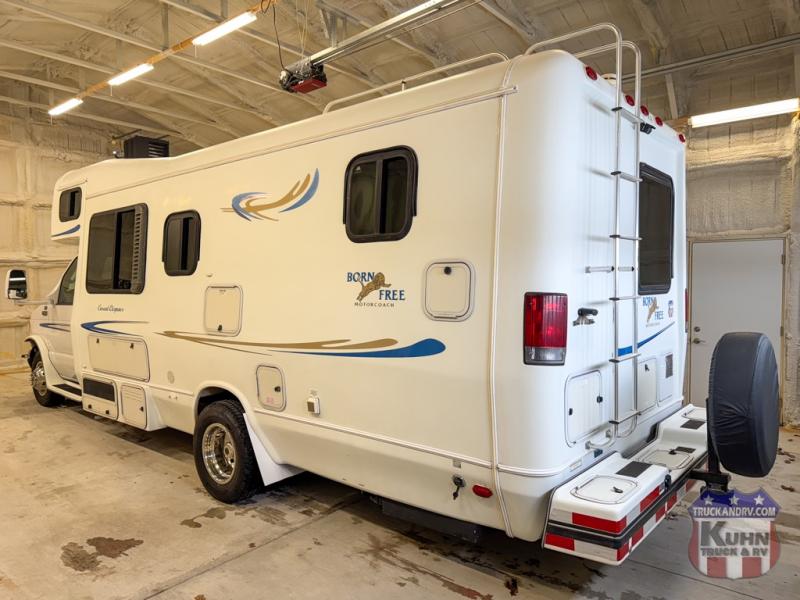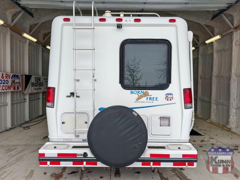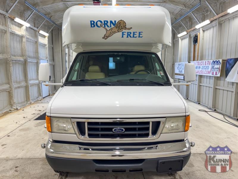2005 Born Free 26RSB - 26.5' bumper to bumper - 6.8L Triton V10 engine - Ford E450 chassis - 15 foot power awning - Tow package - 2 burner cooktop - Microwave oven - 4 seat belts - Generac 4k gas generator with 199 hours - Rooftop A/C - Ducted furnace - Holding tanks - Fully self contained - In the cabin area there are power windows, power locks, tilt, cruise, power mirrors, and CD - This Born Free is ready to hit the highway with a ROAR!