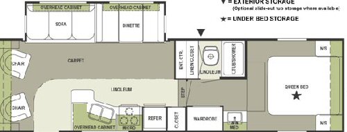 Single Slide, Sleeps 6, Queen Bed, Wardrobe, Shower/Tub, Sofa Bed, Ent. Center, Dinette, Stove, Microwave, Refrig, and More!