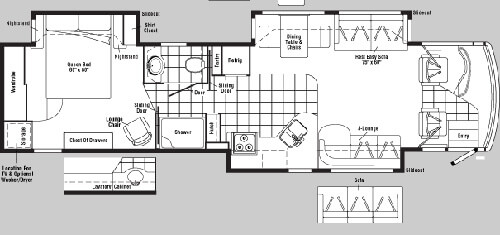 Queen Bed, Shower, Refrigerator, Pantry, Stove, Double Kitchen Sink, J-Lounge, Sofa Sleeper and Much More!
