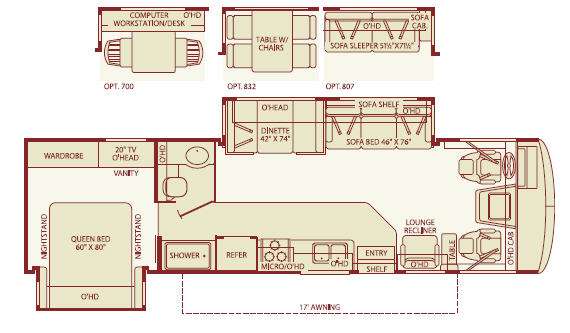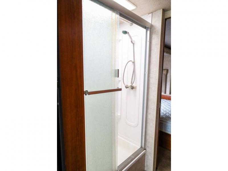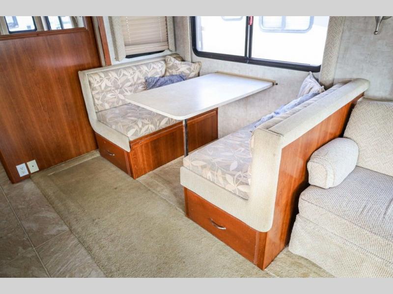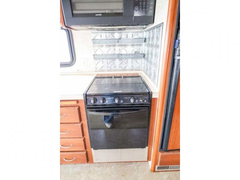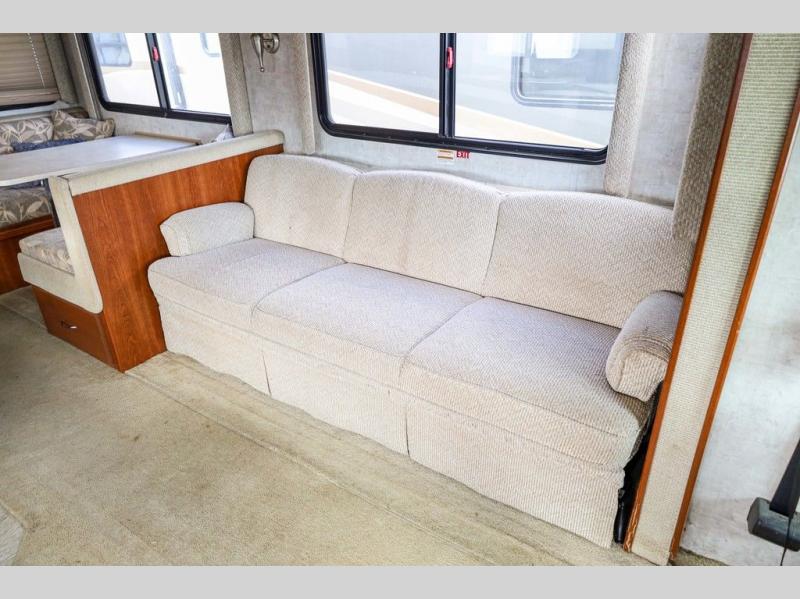Double Slide Fleetwood Bounder Class A w/Rear Bedroom, Wardrobe, TV Overhead, Slide Out Queen Bed w/Nightstands, Private Toilet Area w/Sink, Shower, Refrigerator, 3 Burner Range, Double Kitchen Sink, Swivel Chair w/ Table, Slide Out Booth Dinette/Sofa Bed, Overhead Cabinets, Storage, and More.