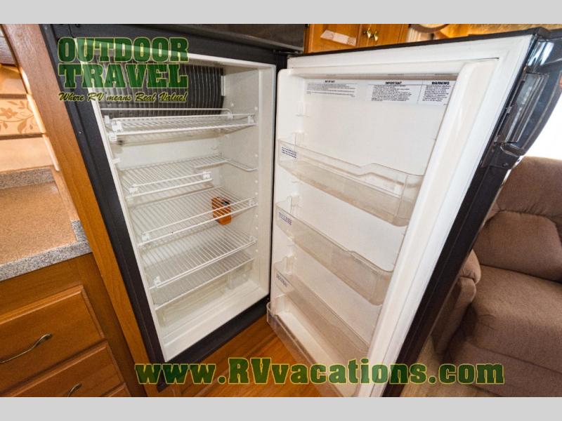 - Standard features include a 13500 BTU air conditioner, 8 cu ft refrigerator, and 34,000 BTU furnace.