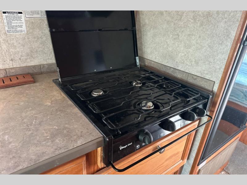 Deluxe carpeting, hardwoord cabinets, 3 burner range top, full size bathroom, 24" flat screen TV, DVD player