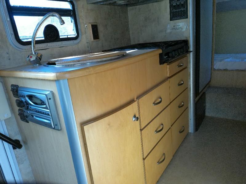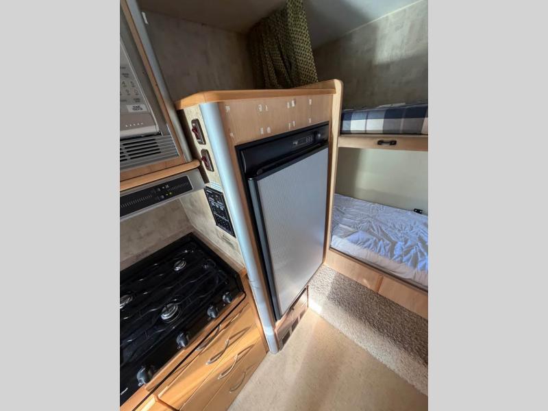 Shower,, Refrigerator, Wardrobe, 3 Burner Range, Sink, w/4 Seat Belts, Bunk over cab and Bunks in the rear