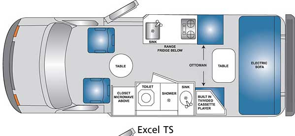 2 Burner Range, 2 Ottomans, Electric Sofa Combined w/Ottomans Make Two Twin Beds or King Bed, Built in TV/Video Cassette Player, Sink, Shower, Microwave, and More!