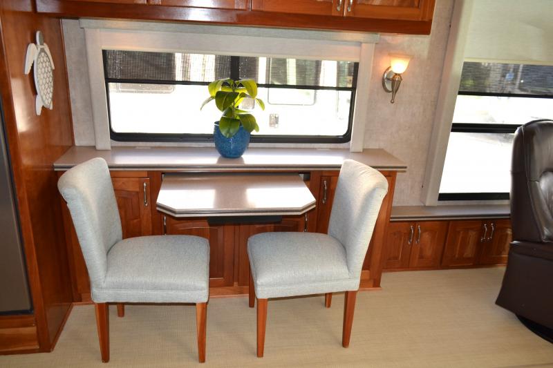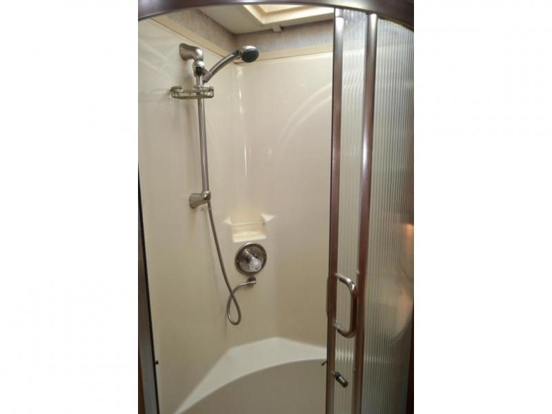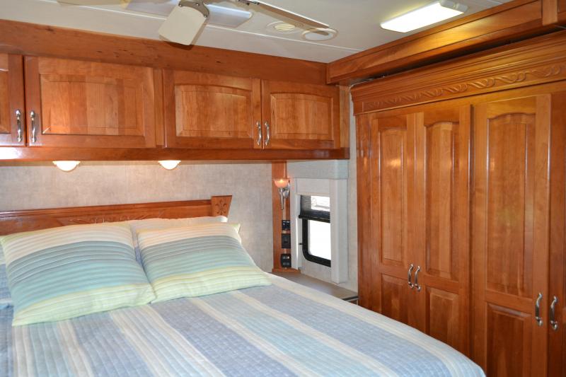 Quad Slide, Rear Queen Bed w/Nightstands, Dresser/Ward., Wash/Dryer Opt., 23 In. LCD TV, Linen Closets, Stool Room, Angle Shower, Lav., Pantry, 3 Burner Range, Refrig., Double Kitchen Sink, Table & Chairs or Booth Dinette, Swivel Rocker or Opt. Desk or 2nd Sofa, TV Above Cab Area, Sofa and More.