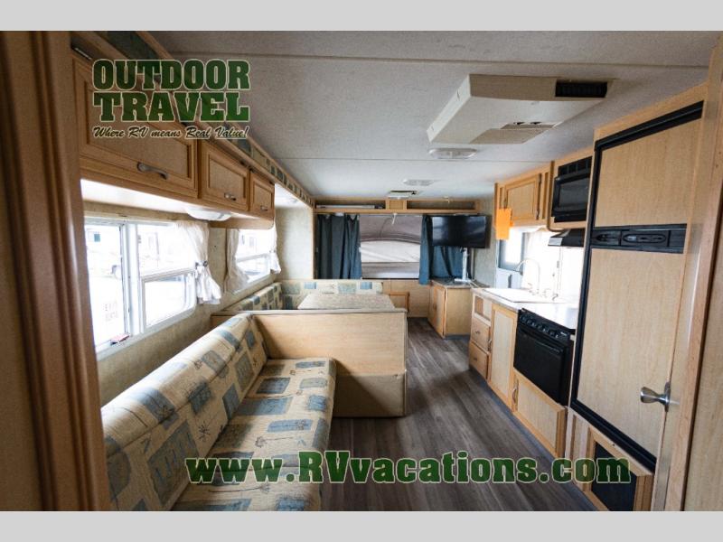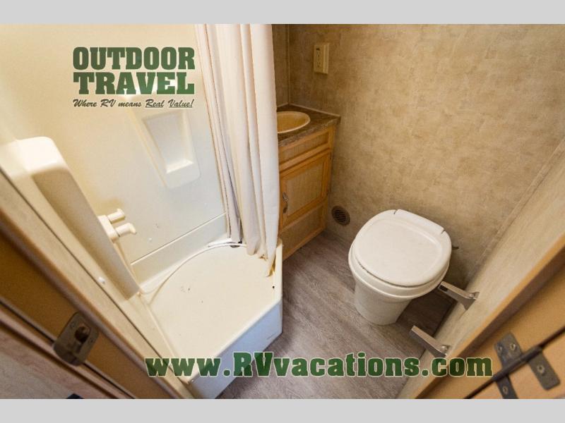 Nice hybrid trailer with two tip outs and a slide out making it a very spacious trailer when all opened up.