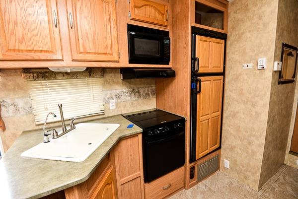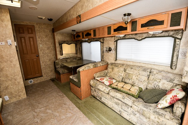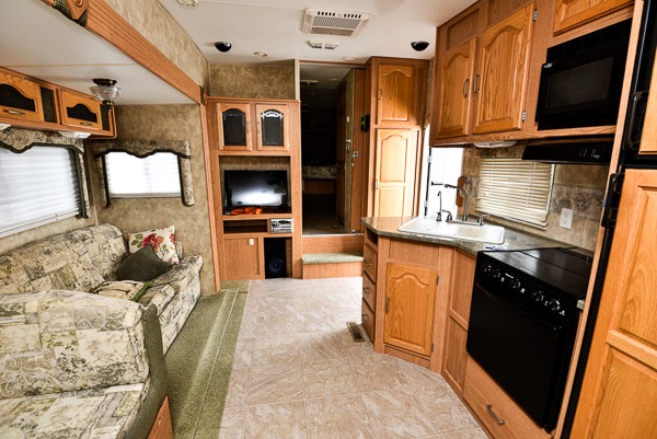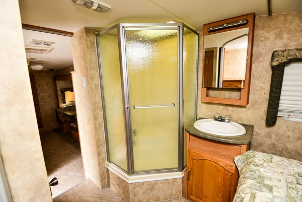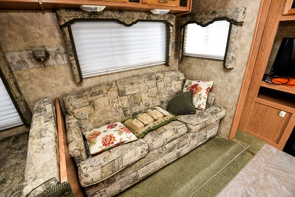 Single Slide, Rear Double Bed Bunks, Wardrobe, Booth Dinette & Sofa Bed Slide, Refrig., 3 Burner Range, Double Kitchen Sink, Ent. Center, Pantry, Seperate Stool Room, Angle Shower, TV Cabinet, Lav., Front Queen Bed w/Wardrobe & Nightstand, Pass-Thru Storage and More.