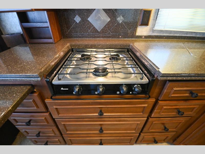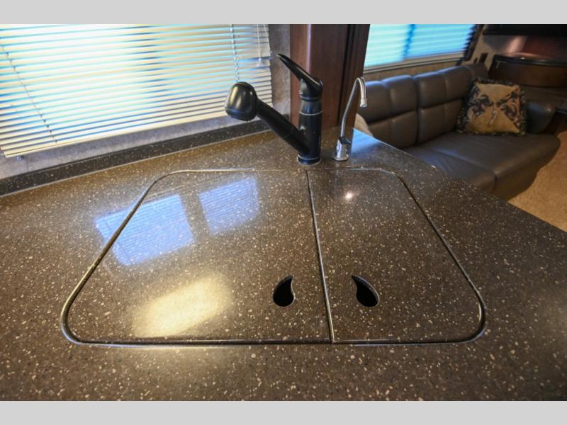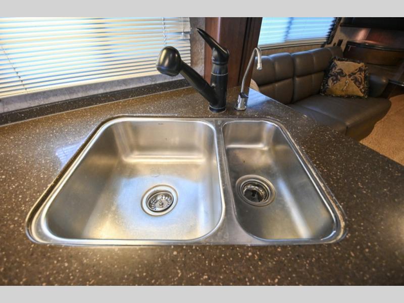 Double Slide, Rear Bedroom, Queen Bed Slide Out, Wardrobe, Bench w/Storage, Full Bathroom, 2 Sofa Sleepers, Free Standing Dinette, Full Kitchen, Double Kitchen Sink, 4 Door Refrigerator, Pantry, 3 Burner Range, and More.