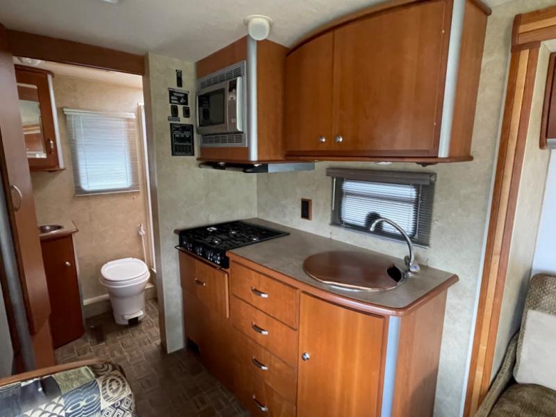 Rear Bath, Shower, Wardrobe, Sliding Door to Bath, 3 Burner Range, Sink, Refrigerator, Booth Dinette w/2 Sets Seatbelts, Sofa Slideout w/3 Sets Seatbelts, Overhead Bed, and More.