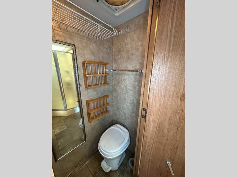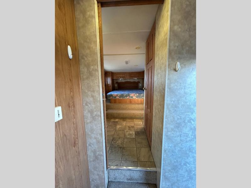 Double Slide, Rear Bunk Slideout w/Futon Sofa Below, Wardrobe/TV Cabinet, Pantry, Booth Dinette w/Extension Opt. & J-Steel Sofa Slideout, Refrig., 3 Burner Range/Microwave, Double Kitchen Sink, Ent. Center, Step Up To Bath w/Angle Shower, Lav., Seperate Stool Room, Step Up To Queen Bed and More.
