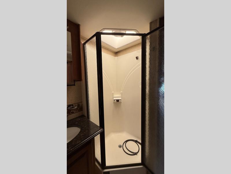 Triple Slide Queen Bed Slideout, Overhead Cabinet, Wardrobe, TV, Angle Shower, Medicine Cabinet, Booth Dinette or Free Standing Table & Chairs Opt. & Lounge Chair Slideout, Refrigerator, 3 Burner Range/Microwave/Double Kitchen Sink & Hide-A-Bed Slideout, Ent. Center w/Bunk or Queen Cab Over Bunk Opt. and More.