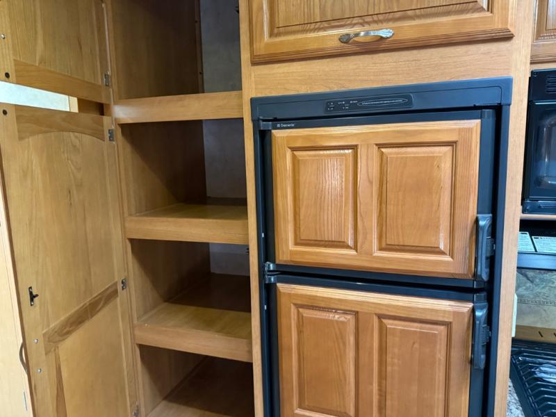 Single Slide, Rear Living Space w/2 Chairs & End Table, Sofa & Booth Dinette Slideout, Overhead Storage, Double Kitchen Sink, 3 Burner Range, Refrigerator, Slide Out Pantry, Ent. Center/Bar Area, Neo-Angle Shower, TV Shelf Above Wardrobe/Linen Cabinet, Separate Stool Room, Front Queen Bed w/Wardrobes, Oversized Storage & More.