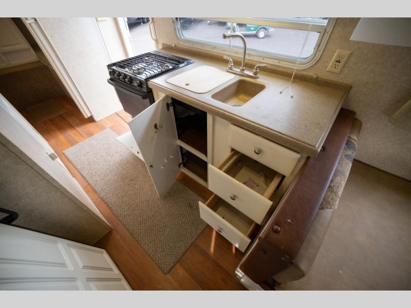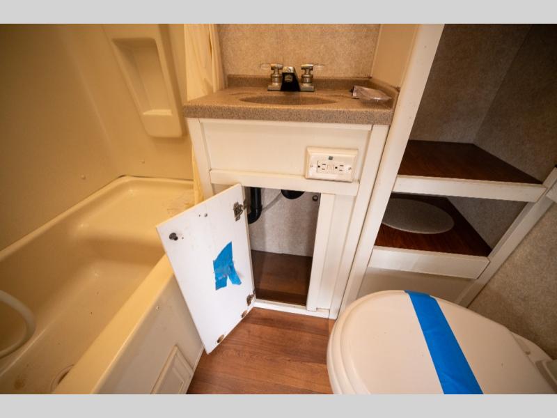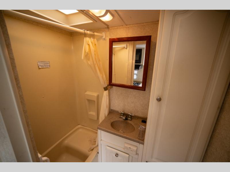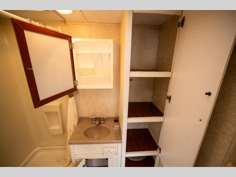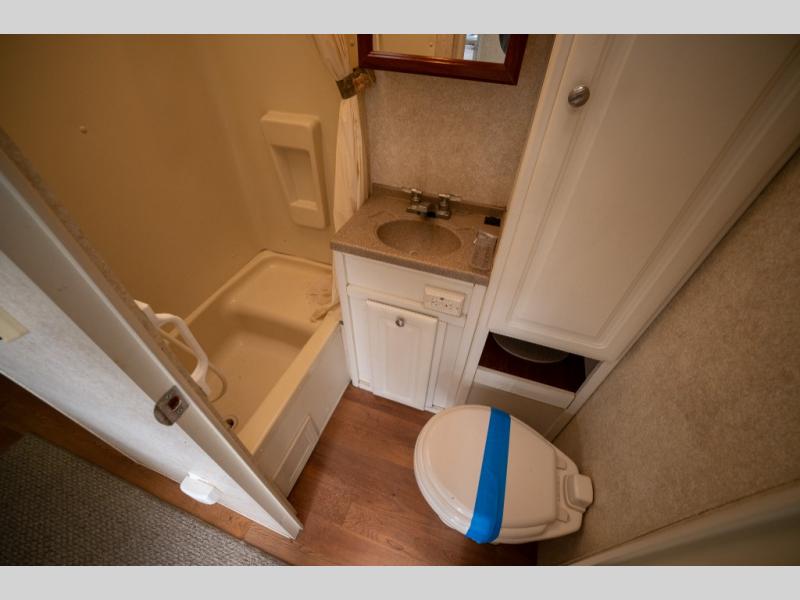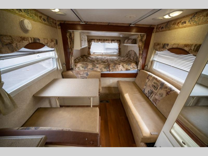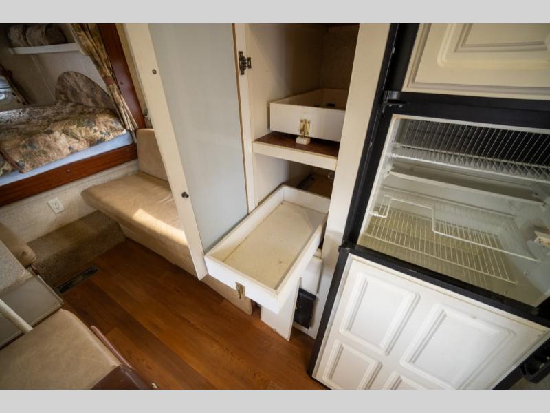Rear Slide Queen Bed, Sofa, Booth Dinette, TV Shelf, Double Kitchen Sink, 3 Burner Range, Refrigerator, Pantry, Step Tub, Linen Closet, Outside Camp Kitchen, Wardrobes, Front Double Bunks w/TV Entertainment Center Between, Pass-Thru Storage and More.